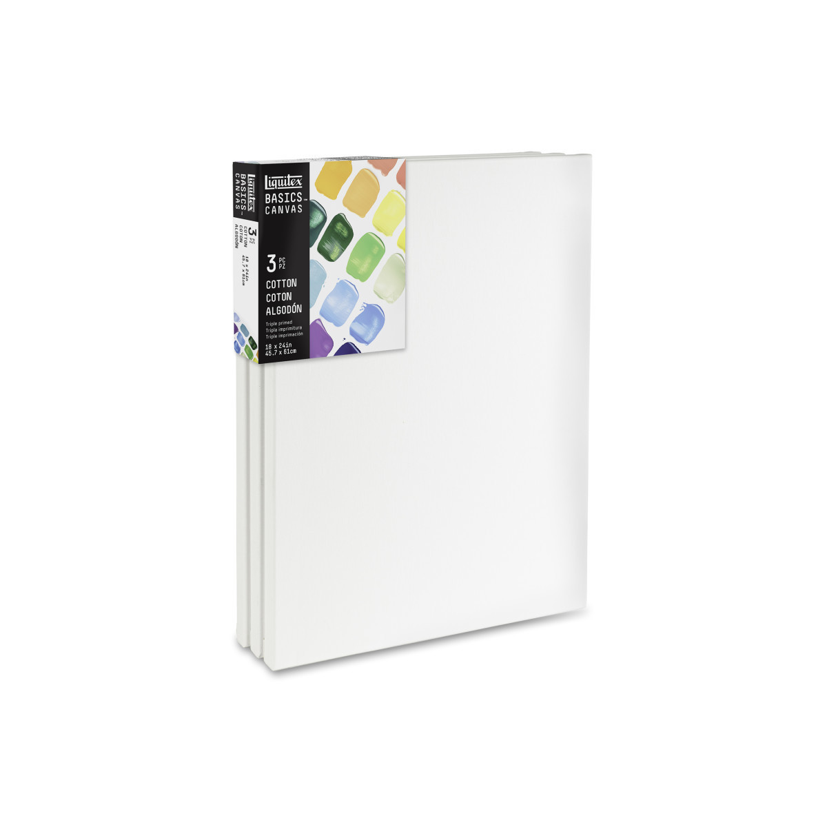 Prepare to paint with confidence using the BASICS Cotton Canvas, 18x24 in, Set of 3. Each canvas is crafted from 100% cotton and pre-primed with acrylic gesso, providing the ideal surface for consistent paint adhesion and color vibrancy. The medium-grain texture offers just the right amount of tooth for both fine details and broad applications. Professionally stretched over durable wooden frames, these canvases are ready to use straight from the package, no prep required. Perfect for art classrooms, studios, or at-home projects, this value set delivers reliable quality for student and professional artists alike.