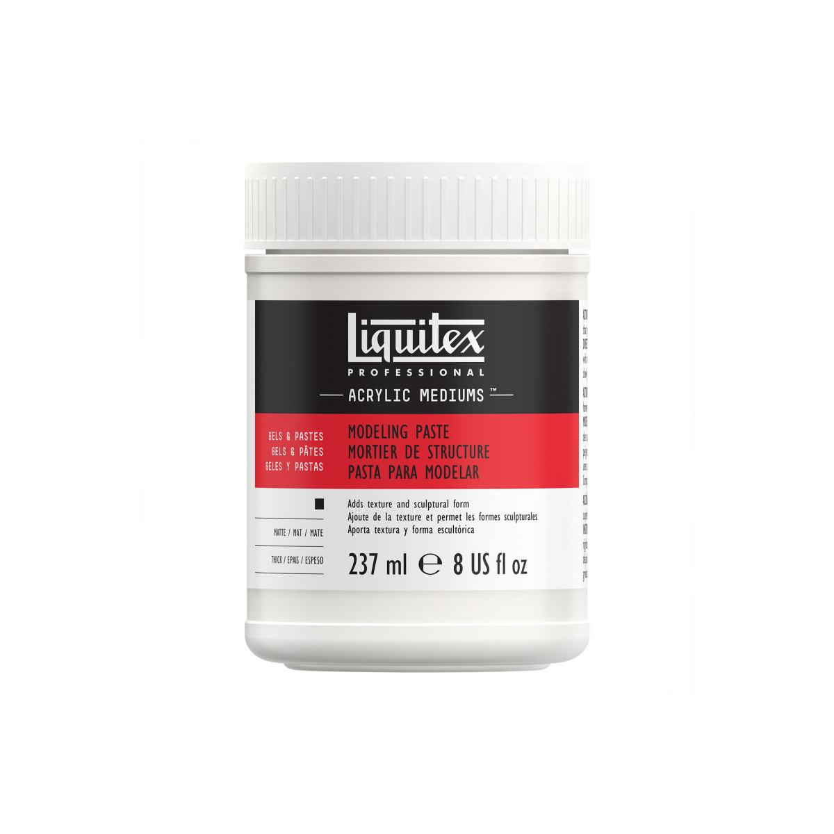 Shape, sculpt, and build dimensional surfaces with Professional Acrylic Modeling Paste. This dense, matte-white medium is made from a blend of acrylic polymer and marble putty, giving it exceptional body and strength for creating texture and relief on canvas, wood, or panel. It can be applied with a palette knife to form peaks, layers, or carved textures and used alone or mixed with acrylic color for tinted effects. Once dry, the surface can be sanded, carved, or painted over with any acrylic paint. The formulation dries hard yet flexible, preventing cracking while retaining crisp texture detail. Non-yellowing and archival, this modeling paste is a studio essential for artists who want to add sculptural depth and tactile expression to their work.