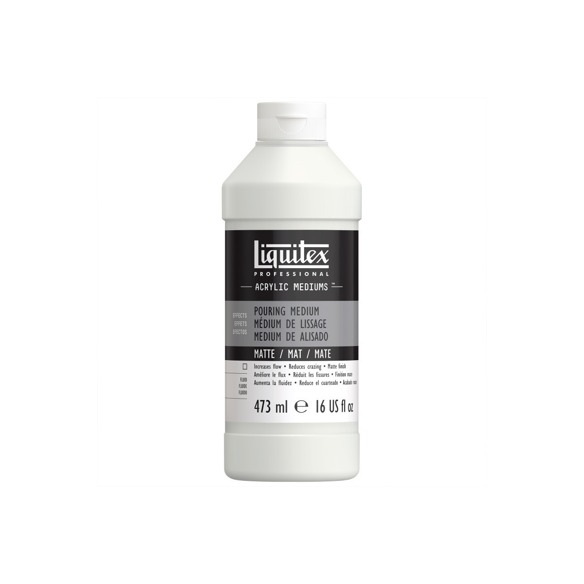Create beautifully smooth pours with a soft, velvety finish using Professional Acrylic Pouring Medium, Matte. This specialized self-leveling medium enhances acrylic paint flow and consistency while drying to a durable, non-reflective surface. It prevents cracks and crazing, ensuring even color distribution and stable film formation. When mixed with acrylic paints, it maintains pigment clarity and intensity while reducing surface gloss for a modern matte appearance. Ideal for traditional pouring, puddling, and marbling techniques, this medium can also be used for layered pours or subtle blending effects. Permanent, flexible, and non-yellowing when dry, it provides professional-quality results for artists seeking refined control and a contemporary matte look in their fluid art.