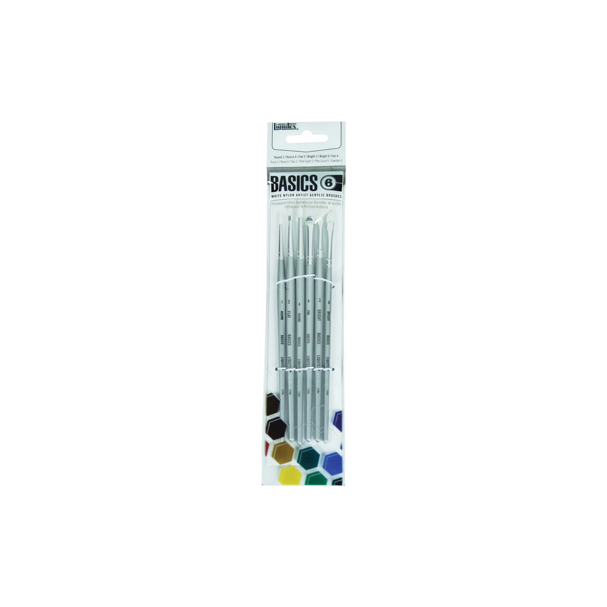 Equip your studio or classroom with the BASICS Brush Pack, Set of 6, a well-rounded collection of essential brush shapes for broad coverage, detail work, and textural effects. Each brush features durable synthetic bristles designed to deliver smooth, even color flow with excellent spring and retention. The set includes a variety of brush types: Round 1 and 4 for fine details and lines; Bright 3 and 6 for crisp, controlled strokes; Flat 2 for bold, sweeping coverage; and Fan 4 for blending and special effects. Ideal for acrylic, tempera, and mixed-media techniques, these short-handle brushes provide comfort and control during long sessions. Durable ferrules and balanced handles ensure lasting performance, making this set perfect for students, hobbyists, and artists alike.
