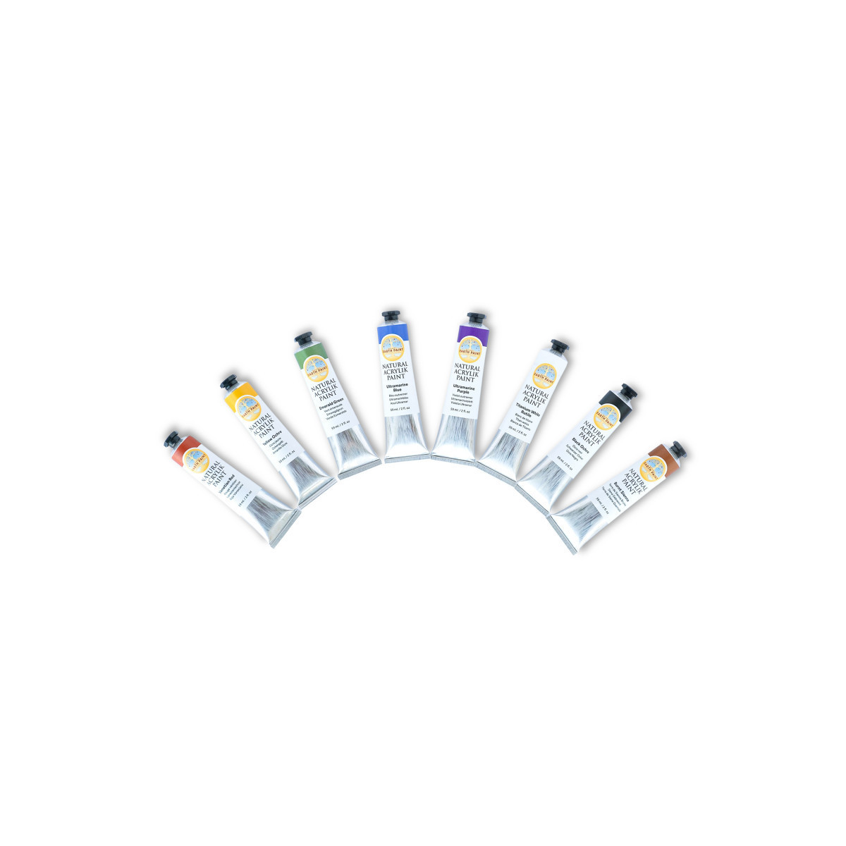 The Natural Acrylik Paint, Earth Colors Set includes 8 plant-based, eco-friendly, lightfast and archival paints in 2 oz. metal tubes. This Natural Acrylik Paint is the ONLY paint that behaves exactly like conventional acrylic paint, but is safe for you and the planet. Highly pigmented, professional quality, medium bodied paints Free of harmful additives, solvents and carcinogenic ingredients. Paints on canvas, paper, wood, fabric, stones, glass and more. Fast drying and mixes perfectly with conventional acrylik paint. This paint can also be used as a permanent and water-proof fabric paint. Made with natural pigments, plant-based resin and bio-based ingredients and dries to a satin finish. Colors Included: Venetian Red, Yellow Ochre, Emerald Green, Ultramarine Blue, Ultramarine Purple, Titanium White Rutile, Burnt Sienna, Black Ochre