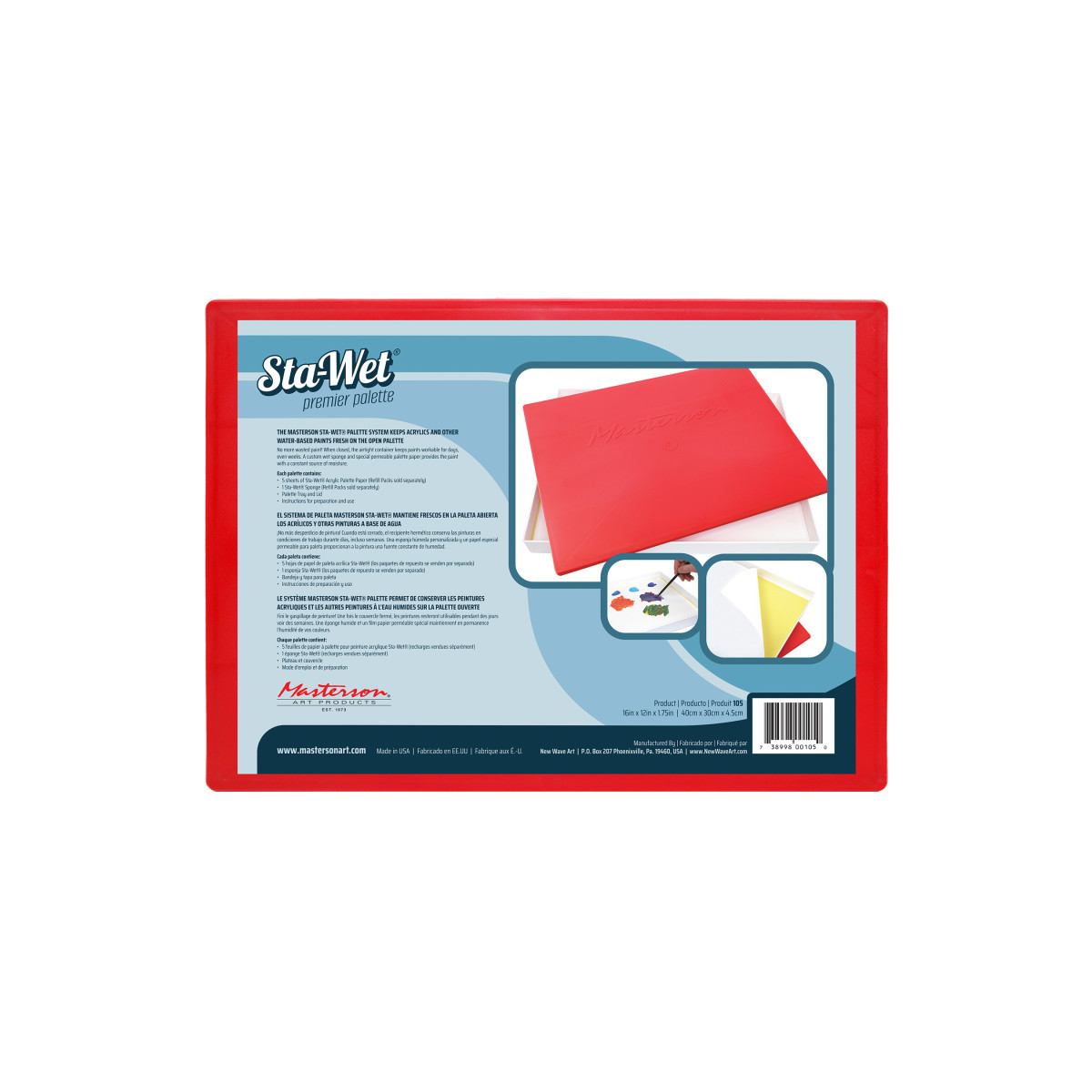 - Complete Sta-Wet® system: Includes 12 x 16 in palette tray, lid, sponge, and five sheets of Sta-Wet® acrylic palette paper.
