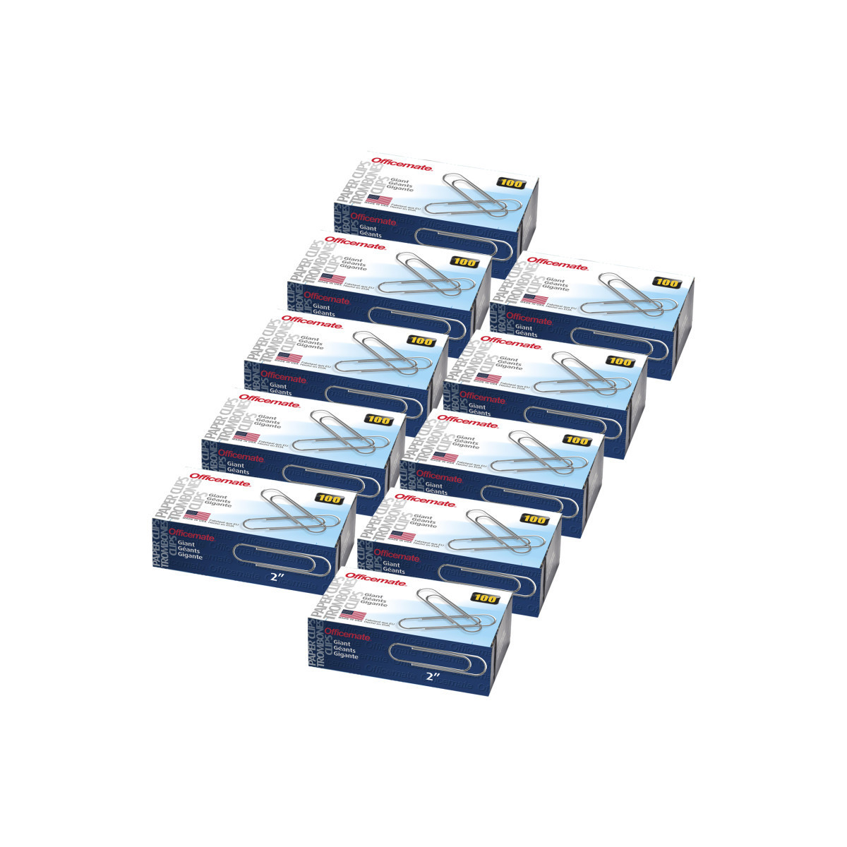 Perfect for home, school, or office. Manufactured from the highest quality steel featuring a bright, corrosion-resistant finish. Giant paper clips, 2" (50mm) long. Made in USA. Each box includes 100 paper clips. Sold as 10 boxes for a total of 1000 paper clips.