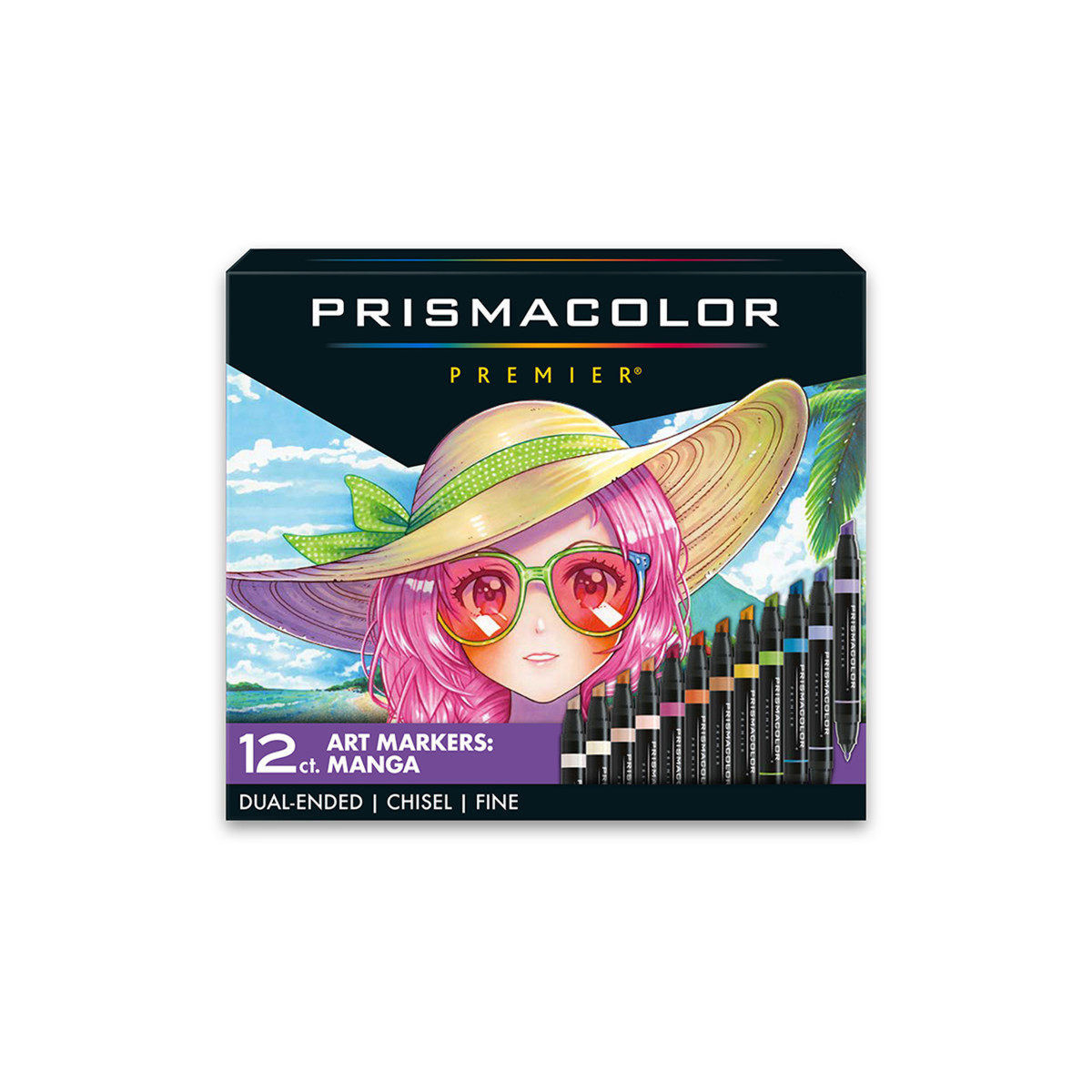 Lay down the precise marks you want in 12 Manga-perfect colors with Prismacolor Premier Dual-Ended Art Markers. These Prismacolor markers feature a fine tip on one end and a large chisel tip on the other. This allows you to quickly flip between precision and coverage and gives you 4 different line widths for ultimate versatility. The ink is richly saturated and designed for an effortlessly smooth flow, while a single source of ink ensures color consistency at both ends. This results in professional artist-quality colors perfect for creating your own Manga art.