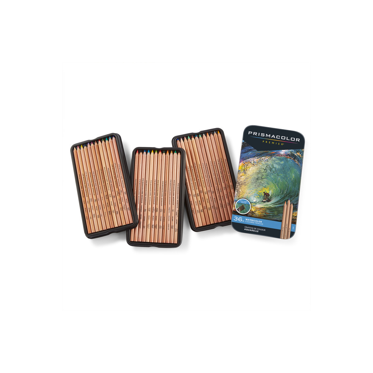 Create shimmering, translucent effects with Prismacolor Premier Water-Soluble Colored Pencils. You'll be treated to 36 watercolor colored pencils with cores of unparalleled solubility that can be paired with a brush to soak your sketches in glassy surfaces and dreamy textures. Prismacolor coloring book pencils have high-quality pigments that can be used dry to match the Prismacolor palette. Now you can flawlessly transition between lifelike liquids and precise details.