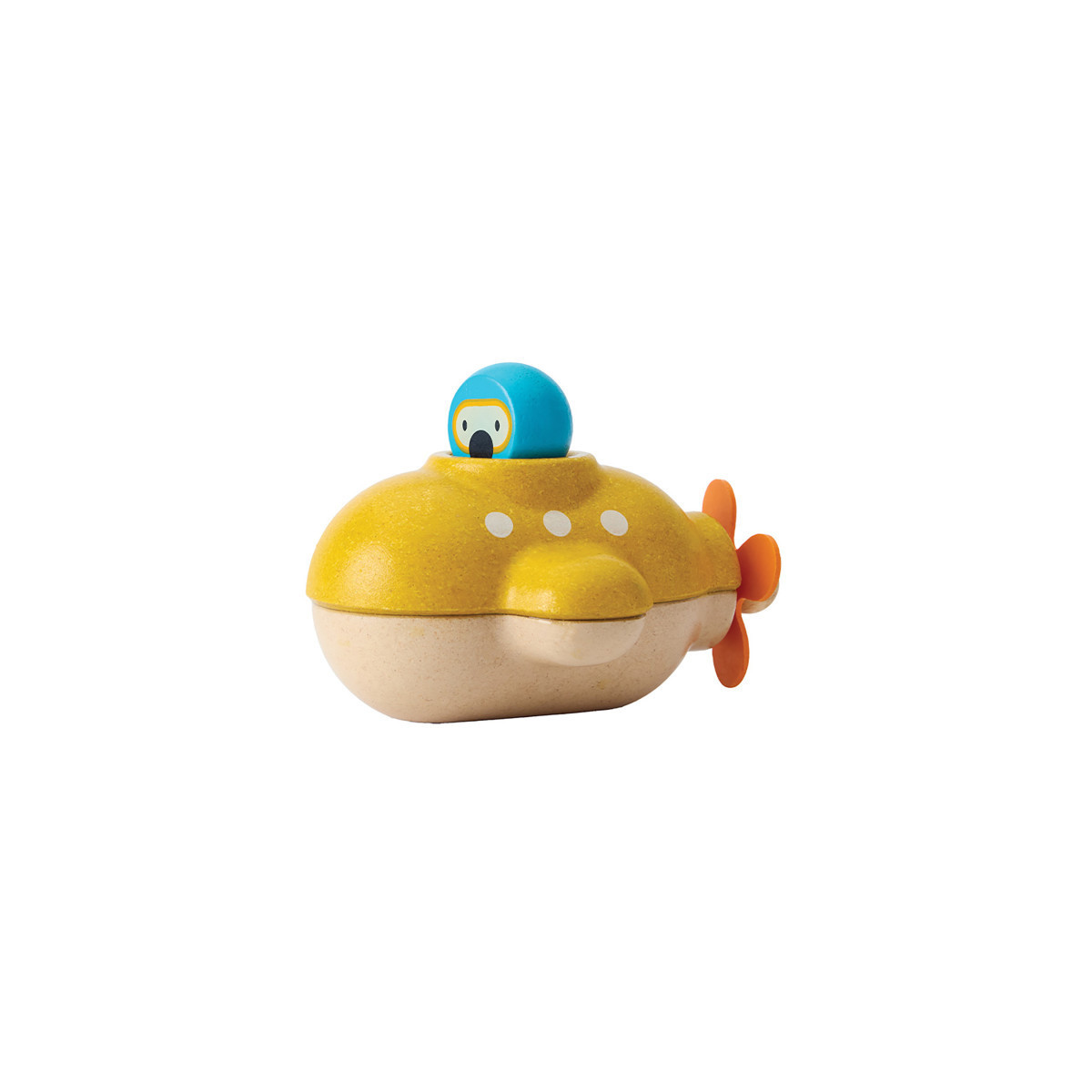 Take the Submarine underwater for an imaginative exploration! Crafted with PlanWood, this free-play toy comes with a boat and driver, and is waterproof and suitable for the bath, lake, a sensory-play experience or the ocean. Rinse it clean, wipe it down and let it air dry in a neutral environment after play to keep it in good condition. Sustainably made in Thailand using chemical-free rubberwood, organic pigments and water-based dyes.