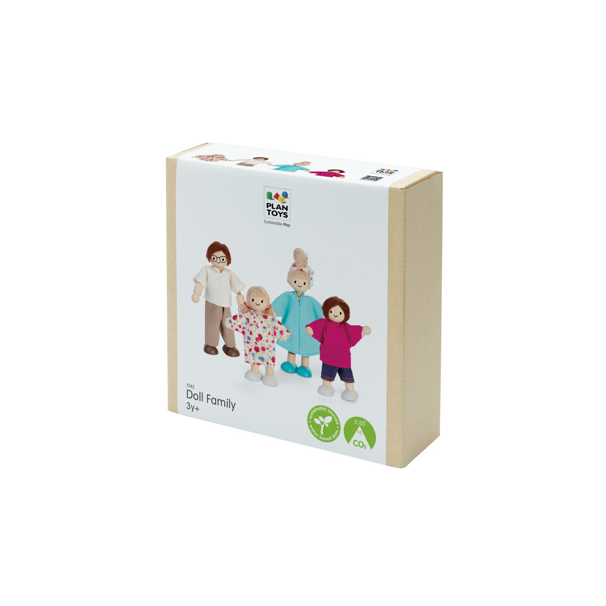 Introduce your child to inclusive and imaginative play with the PlanToys Wooden Doll Family in a light complexion with blonde and brown hair. These four beautifully crafted figures are sized to a 1:12 scale, making them the perfect fit for PlanToys dollhouses or any action figure play setting. Each doll features wooden heads and bodies with flexible wire arms and legs, allowing easy posing for endless storytelling possibilities. The diverse set includes figures of varying ages, from children to adults, and embraces a mix of pronouns—two with he/him and they/them, and two with she/her and they/them—supporting inclusive play experiences. Made sustainably in Thailand using chemical-free rubberwood, formaldehyde-free glue, organic pigments, and water-based dyes, this set is both eco-friendly and safe for children.