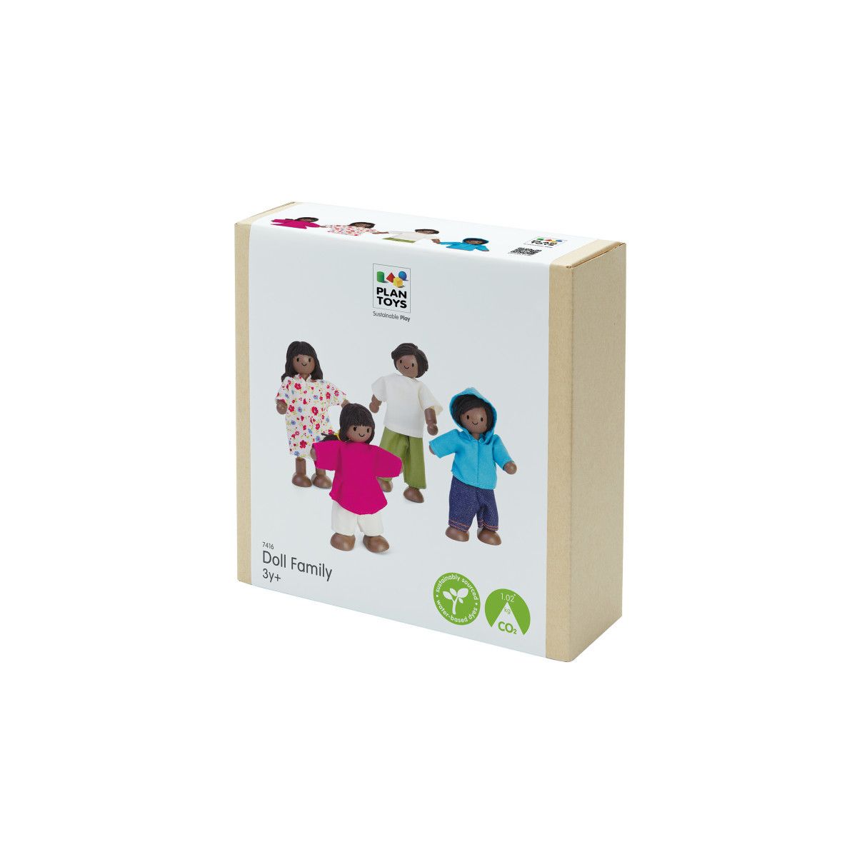 Expand your child’s imaginative play with the PlanToys Wooden Doll Family in a rich dark skin tone. Perfectly sized at 1:12 scale, these four poseable figures fit seamlessly into PlanToys dollhouses or any action figure play space. Crafted with wooden heads and bodies and flexible wire arms and legs, each doll can be easily posed for creative storytelling and role-play. The diverse family set features two figures with he/him and they/them pronouns and two with she/her and they/them pronouns, representing a variety of ages from children to adults. Sustainably made in Thailand using chemical-free rubberwood, formaldehyde-free glue, organic pigments, and water-based dyes, this doll family is a safe, eco-friendly choice for inclusive play.