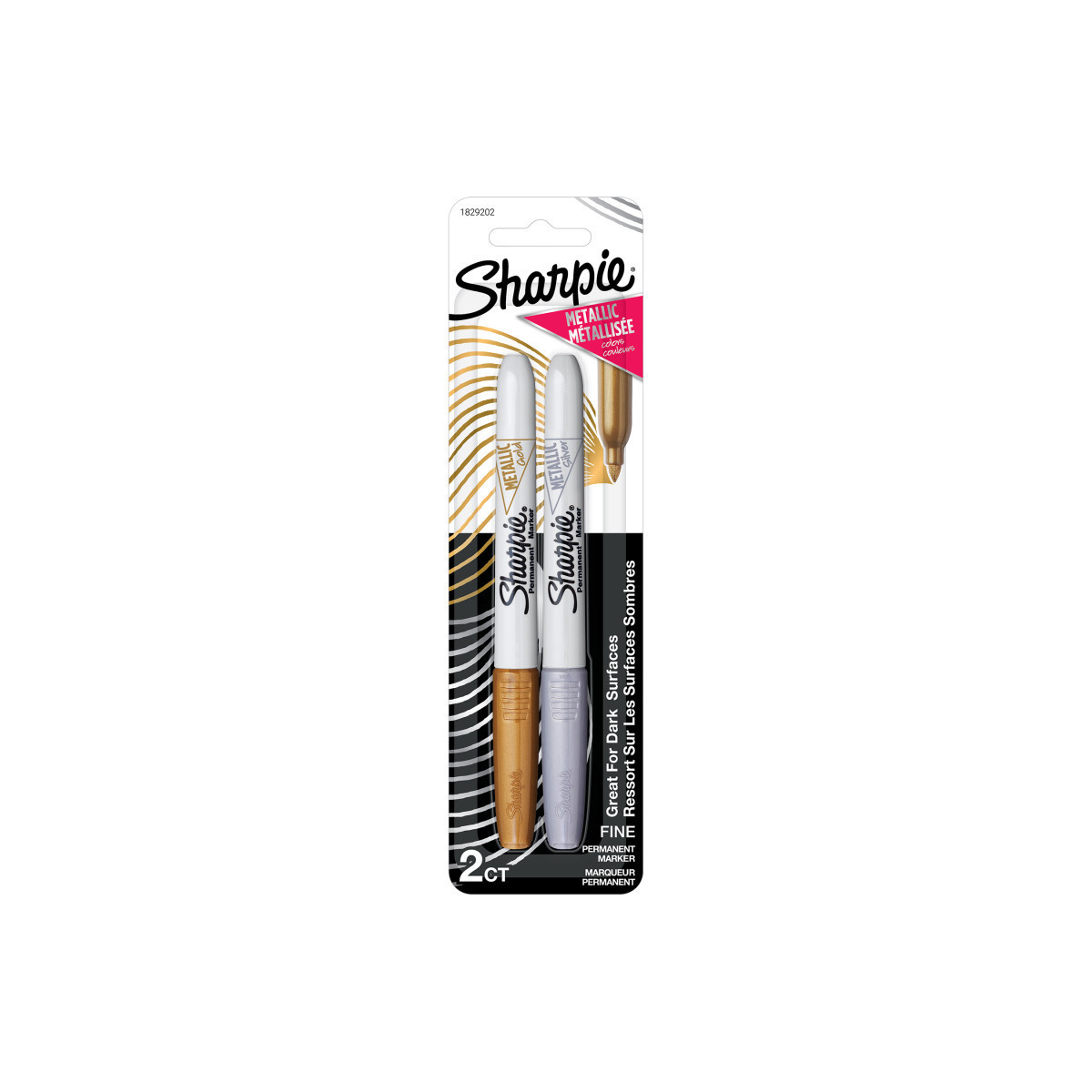 Never dull and always brilliant, Sharpie Metallic Fine Point Permanent Markers leave glimmering marks nearly everywhere your imagination dares to wander. Putting pale imitations to shame, Sharpie Metallic Markers lay down a pure, brilliant metallic sheen that boldly stands out, particularly on dark surfaces. Each Sharpie Metallic Fine Point Marker is filled with quick-drying, fade- and water-resistant ink that's designed to make magnificent marks on almost any surface. Add weight to your words with your choice of gleaming gold or striking silver metallic finishes. Pack of 3 markers.