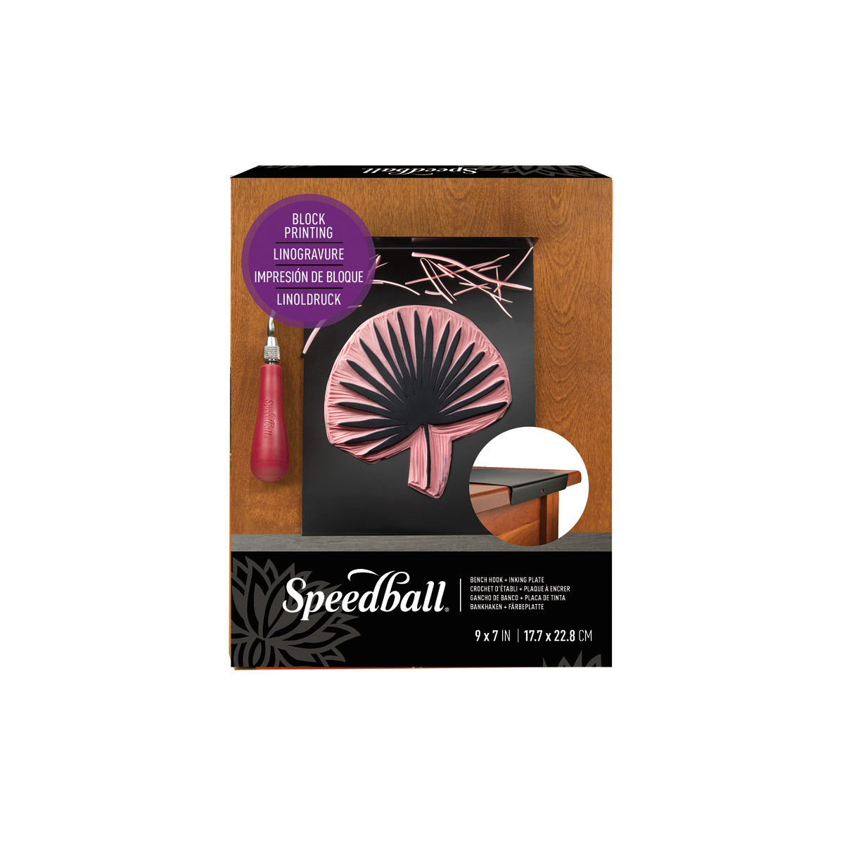 Simplify your printmaking setup with the Speedball® Bench Hook and Inking Plate for Block Printing Carving, 9x7 in. This essential two-in-one tool provides a safe, stable workspace for both carving and inking. The metal bench hook securely grips the edge of your worktable, preventing slippage while cutting or gouging printing blocks. Its flat inking plate doubles as a smooth, easy-to-clean surface for rolling out block printing inks evenly with a brayer. Compact yet sturdy, this combination tool is perfect for artists, educators, and students working in relief printing. Built for durability and ease of use, the Speedball Bench Hook and Inking Plate ensures professional results while keeping your workspace organized and efficient.