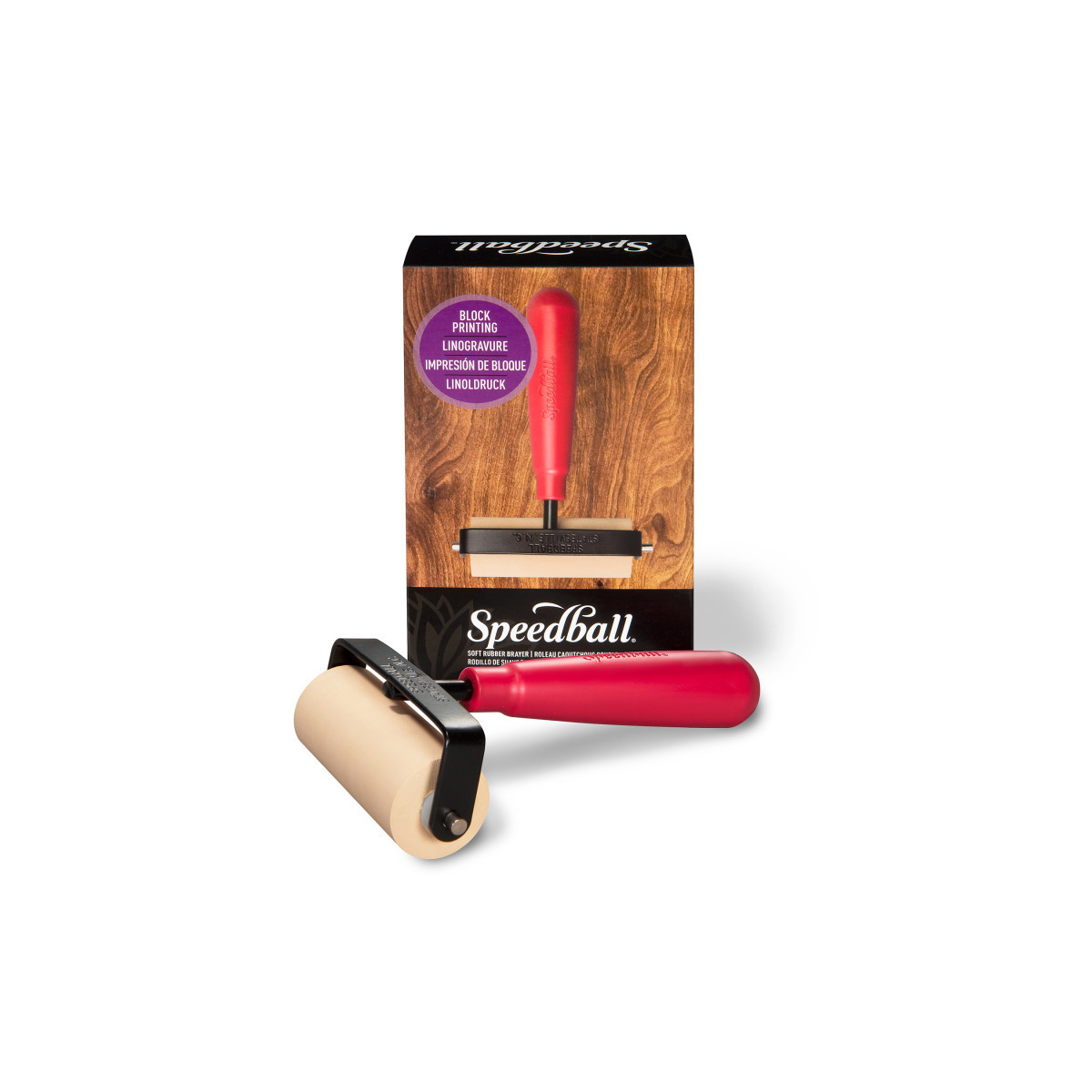 Achieve clean, even prints with the Speedball® Deluxe Soft Rubber Brayer, 3 in. Built with a 40/42 durometer soft rubber roller, this brayer evenly distributes ink across a wide range of surfaces, including linoleum, woodblocks, and gel printing plates. Its flexible rubber composition allows it to adapt to slight surface variations, producing consistent, streak-free coverage. The solid steel frame enhances stability and longevity, while the ergonomic handle provides comfort and control during extended printing sessions. Ideal for block printing, stamping, collagraph work, and mixed-media applications, the 3-inch Deluxe Brayer offers professional performance in a versatile, widely used size.