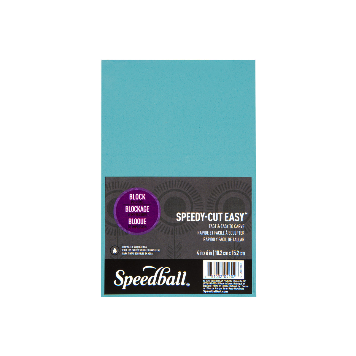 The Speedball® Speedy Cut Easy™ Block, 4x6 in, Blue provides a smooth, forgiving surface that makes block printing accessible for artists of all levels. Softer than traditional linoleum, this block cuts easily with standard lino cutters, allowing for smooth curves, detailed lines, and clean textures without resistance. Its consistent density ensures even ink transfer for crisp, reliable prints. Specially engineered for use only with water-soluble block printing inks, the block is perfect for classroom instruction, hobby printmaking, and introductory relief printing techniques. Lightweight, latex-free, and easy to carve, the Speedy Cut Easy™ Block is widely trusted for stamp-making, pattern design, and general relief printing projects.
