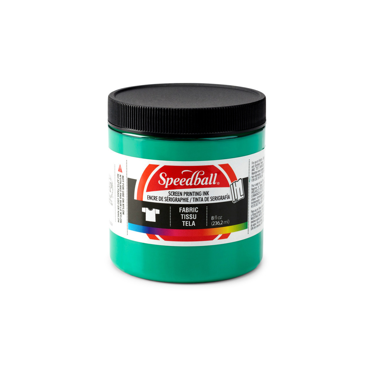 The Fabric Screen Printing Ink, 8 oz, Green, made by Speedball, delivers bold, saturated color ideal for printing on textiles and a wide variety of fabric surfaces. This water-based formula provides smooth, consistent coverage with easy workability, allowing both beginners and experienced printers to achieve professional, even prints. Once heat set, the ink becomes permanent, flexible, and washable, maintaining vibrancy wash after wash. Suitable for cotton, polyester blends, canvas, linen, rayon, and most porous fabrics, this green ink also works beautifully on paper for mixed-media or craft projects. Non-toxic and low odor, it is safe for studio use and classroom environments.