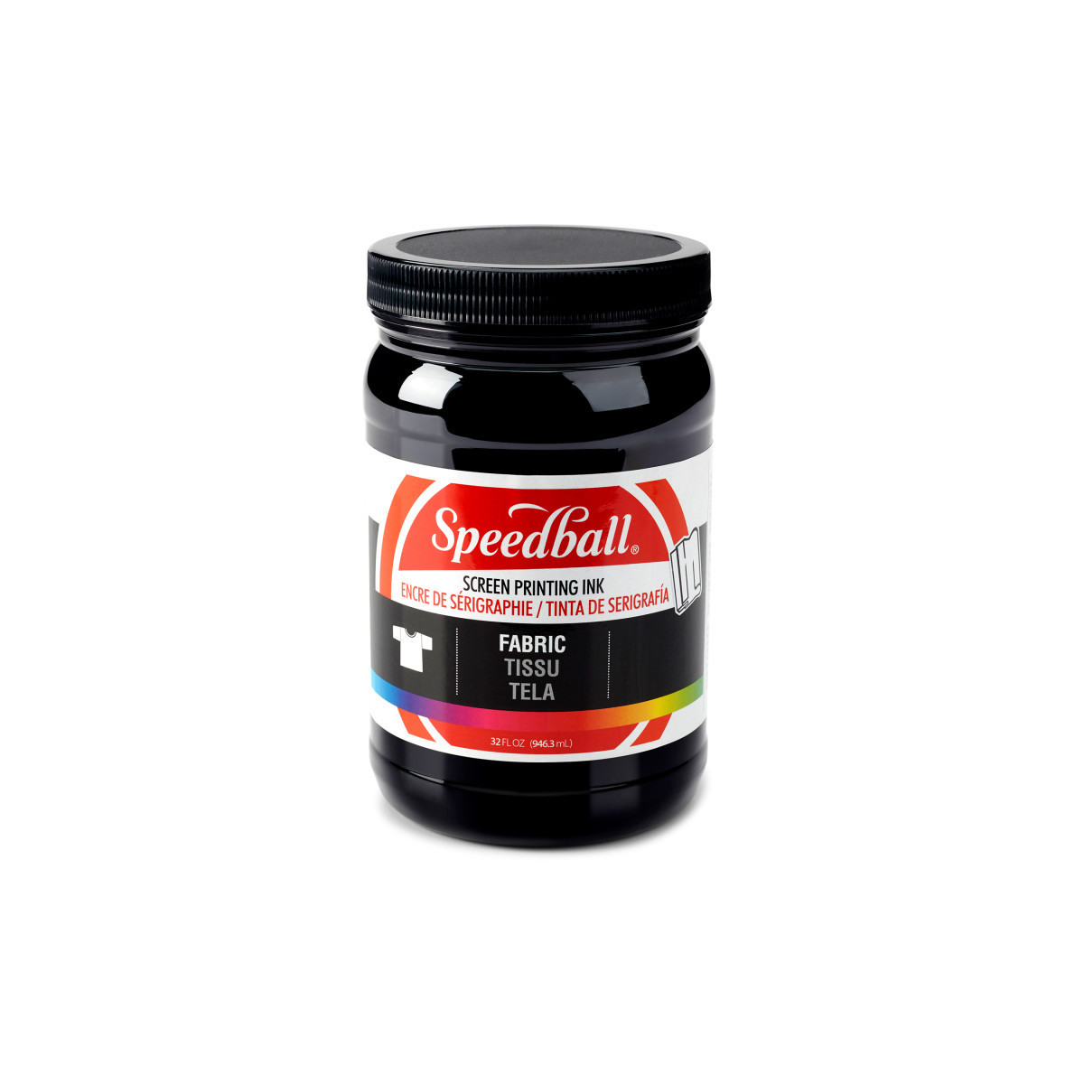 The Fabric Screen Printing Ink, 32 oz, Black, made by Speedball, delivers deep, opaque black coverage ideal for apparel printing, textile design, and classroom production work. This water-based formula is designed for smooth application, consistent performance, and easy cleanup, making it a reliable choice for both beginners and experienced screen printers. Once heat set, the ink becomes permanent, flexible, and washfast, maintaining its dense black tone through repeated laundering. Perfect for printing on cotton, canvas, polyester blends, rayon, linen, and most porous fabrics, it also produces crisp results on paper for posters and mixed-media work. The large 32 oz size is ideal for high-volume printing, workshops, or busy studios, providing long-lasting value and dependable quality.