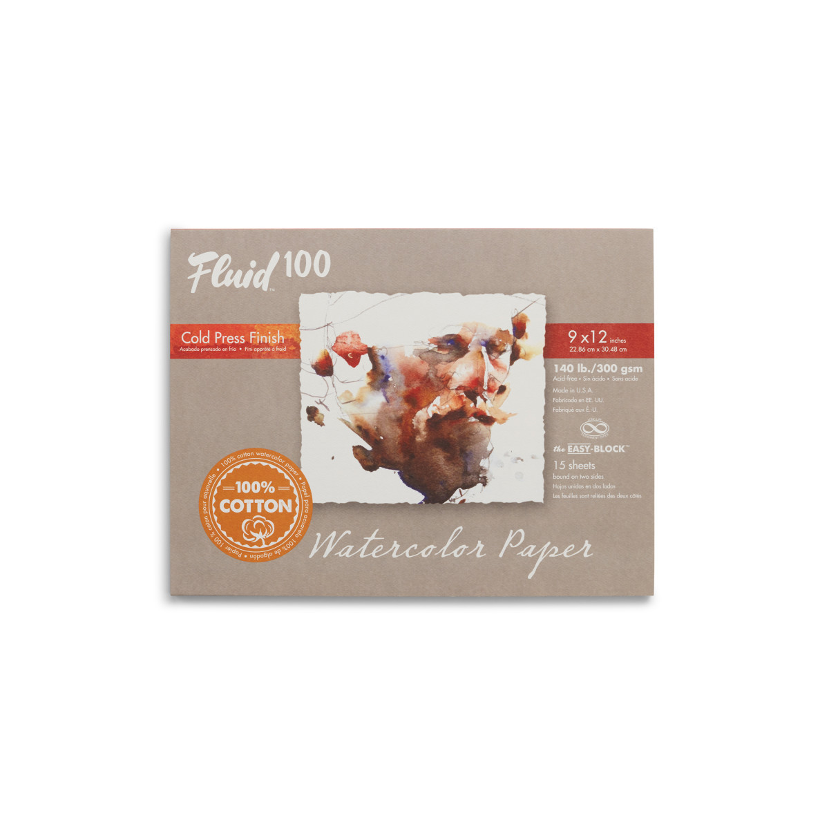The Fluid™ 100 Watercolor Paper Block, 140 lb (300 GSM), 9x12 in, 15 Sheets offers professional-quality paper crafted for artists who demand superior performance and consistent results. Made from 100% cotton and produced with traditional cylinder mold technology, this cold press paper delivers exceptional absorbency, surface strength, and natural texture. Each sheet is glued on all four sides to create a watercolor block, eliminating the need for taping or stretching and ensuring the paper remains perfectly flat while painting. Ideal for wet-on-wet techniques, glazing, lifting, and fine detail work, Fluid™ 100 supports a full range of watercolor styles. Archival and acid-free, this block provides long-lasting stability for finished artwork and studio practice.
