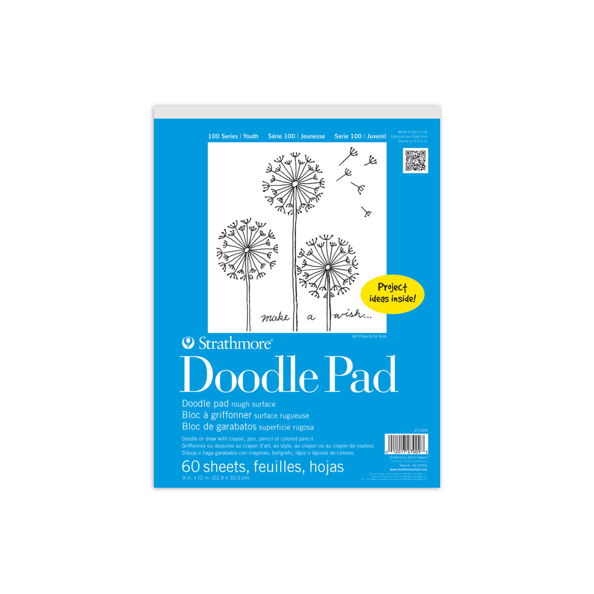 The 100 Series Doodle Paper Pad, 9x12 in, White, 60 Sheets, produced by Strathmore, offers a versatile drawing surface designed for everyday creativity. The white, lightly textured paper is perfect for sketching, doodling, brainstorming, and casual illustration using pencils, pens, markers, and crayons. Its lightweight construction makes it easy for students, hobbyists, and artists to explore ideas freely without worrying about heavy paper or formal presentation. The convenient 9x12 in size works well for classroom use, at-home art sessions, or on-the-go sketching. With 60 sheets per pad, there is plenty of space to experiment, practice, and play.