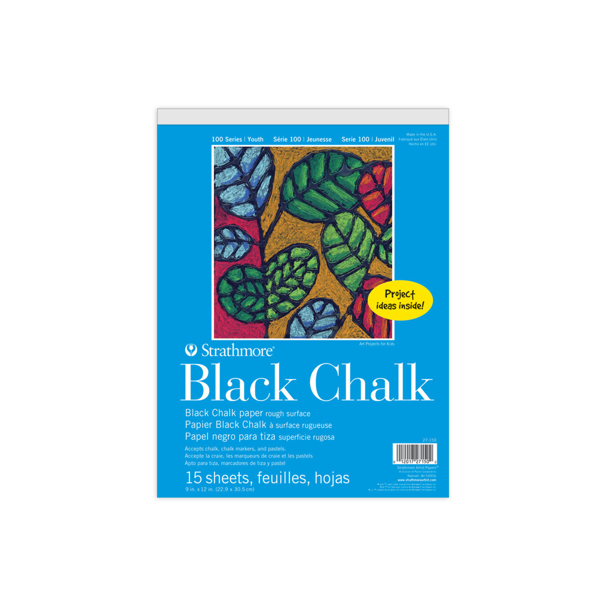 The 100 Series Black Chalk Paper Pad, 9x12 in, 15 Sheets, produced by Strathmore, provides a deep black surface that enhances the brilliance of chalk, pastels, chalk markers, and opaque drawing tools. The smooth-yet-grippy texture allows pigments to adhere cleanly, supporting strong contrast, expressive mark-making, and detailed linework. This 9x12 in pad is perfect for trend-forward chalk art, hand lettering, poster-style artwork, seasonal signage, and dramatic illustrations. With 15 sheets of heavyweight paper, it works well in classrooms, studios, and home art environments where artists want to explore light-on-dark drawing techniques. Durable and versatile, it invites experimentation for all ages and skill levels.