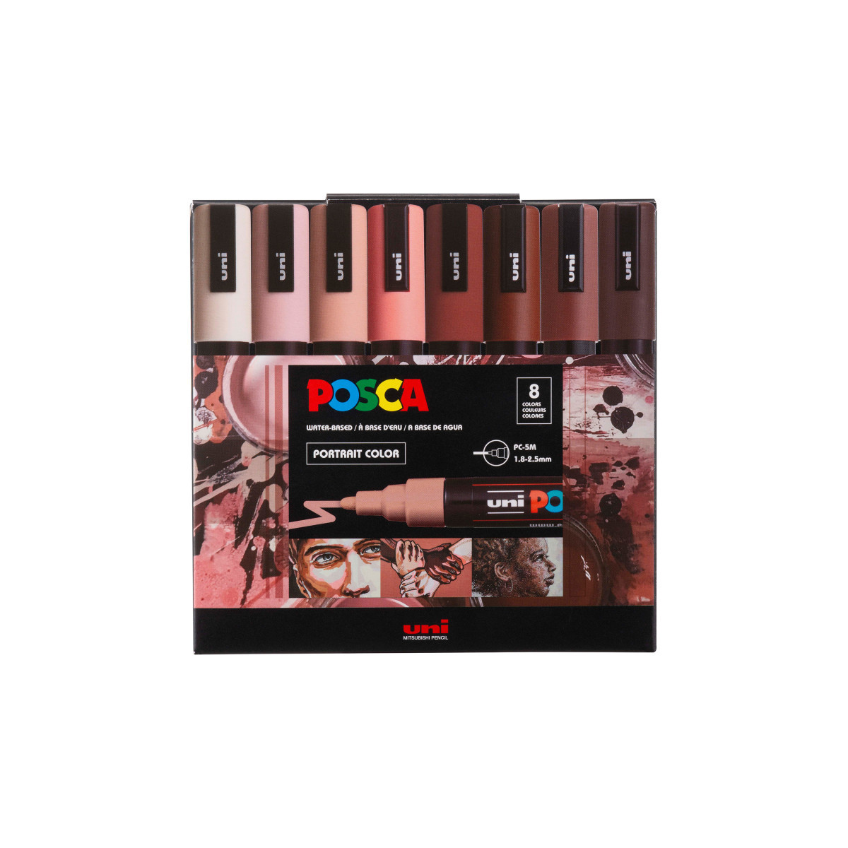 Uncap your imagination with uniball's POSCA PC-5M, the ideal water-based paint marker for customizing or decorating any type of surface. The medium 1.8-2.5mm tip is reversible, always ensuring a clear, precise paint line and beautiful color. The PC-5M marker suits all types of users from artists and creative professionals to hobbyists and decorators to surfers and skaters! Everyday creatives and budding artists use this paint marker for coloring, line drawing and ornamentation on a multitude of surfaces. Dilute, mix or blend the paint ink to create stunning effects for your indoor and outdoor projects. POSCA paint ink is permanent on porous surfaces and erasable on most smooth non-porous materials. Its ease of use makes this paint marker ideal for beginners to explore their creativity. Portrait colors included: Dark Brown, Cacao Brown, Brown, Chestnut, Coral Pink, Powder Pink, Satin Pink, Beige.