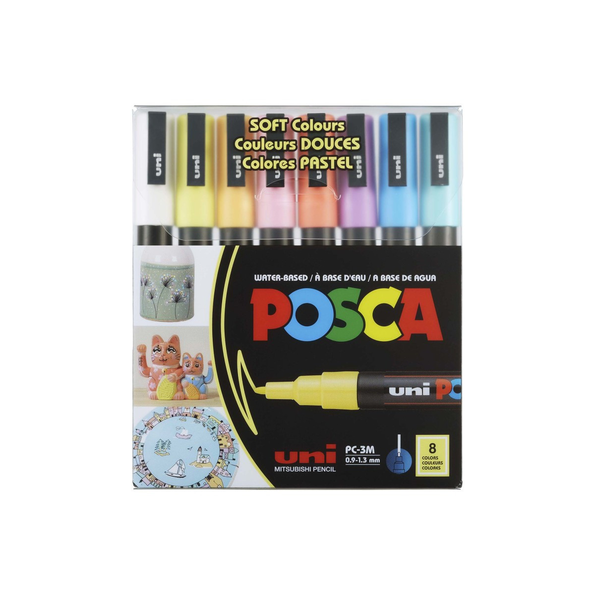 uni® uni® POSCA PC-3M Water-Based Paint Markers, Reversible Fine Tip (0.9-1.3mm), Soft Colors, 8 Pack