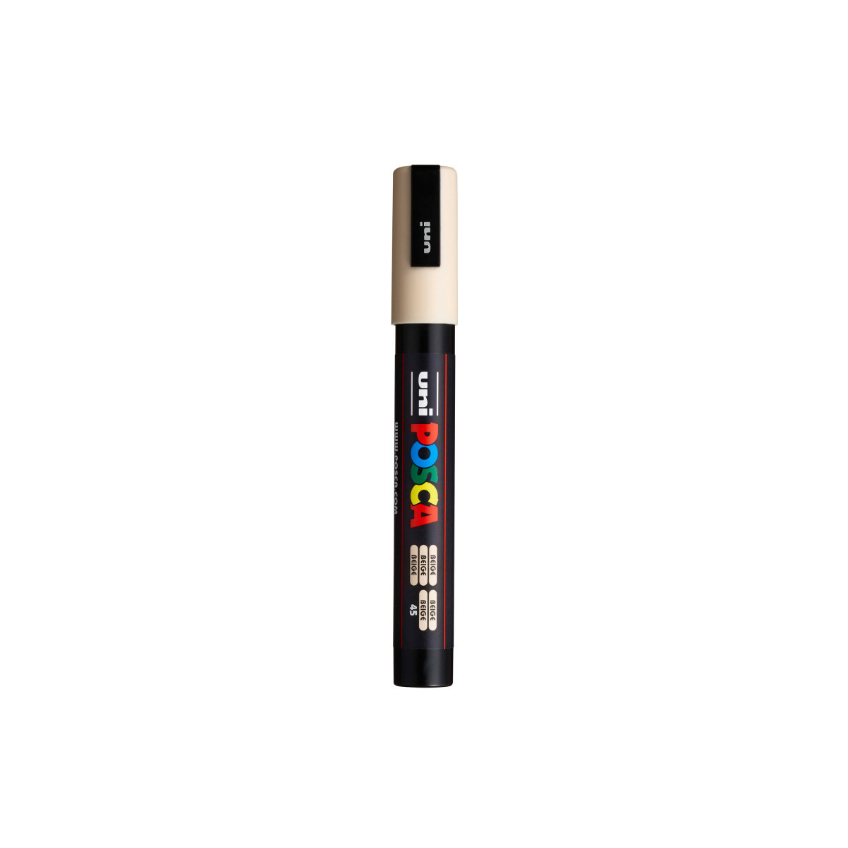 Create bold, vibrant artwork with the POSCA PC-5M Paint Marker, Reversible Medium Bullet Tip (1.8–2.5 mm), Beige. This versatile paint marker is designed for smooth, even coverage on a wide range of surfaces, including paper, canvas, wood, metal, plastic, glass, ceramic, fabric, and stone. The medium bullet tip offers excellent control and flexibility, fine enough for outlining and lettering, yet broad enough for coloring, shading, and larger areas. The highly opaque, water-based paint applies cleanly, dries quickly to a matte finish, and resists smudging, bleeding, and fading. POSCA’s reversible tip can be removed, flipped, or replaced to extend the life of each marker. Ideal for illustration, mixed media, journaling, craft projects, customization, and classroom use, the PC-5M marker is one of POSCA’s most popular sizes for artists and students who need reliable, multi-surface performance.