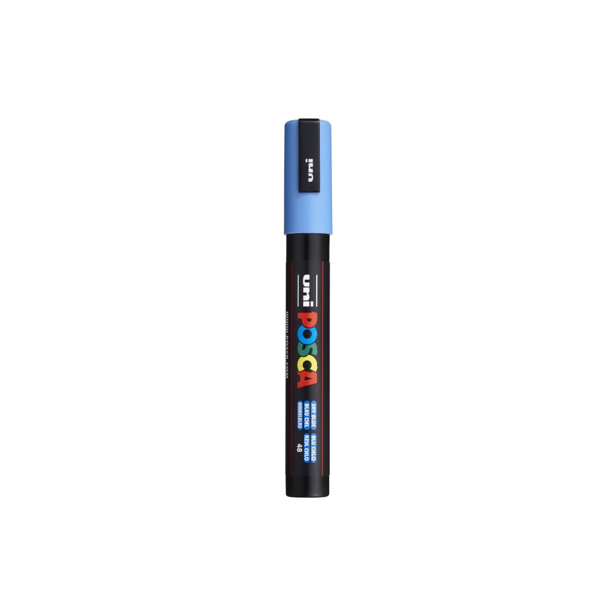 Create bold, vibrant artwork with the POSCA PC-5M Paint Marker, Reversible Medium Bullet Tip (1.8–2.5 mm), Sky Blue. This versatile paint marker is designed for smooth, even coverage on a wide range of surfaces, including paper, canvas, wood, metal, plastic, glass, ceramic, fabric, and stone. The medium bullet tip offers excellent control and flexibility, fine enough for outlining and lettering, yet broad enough for coloring, shading, and larger areas. The highly opaque, water-based paint applies cleanly, dries quickly to a matte finish, and resists smudging, bleeding, and fading. POSCA’s reversible tip can be removed, flipped, or replaced to extend the life of each marker.