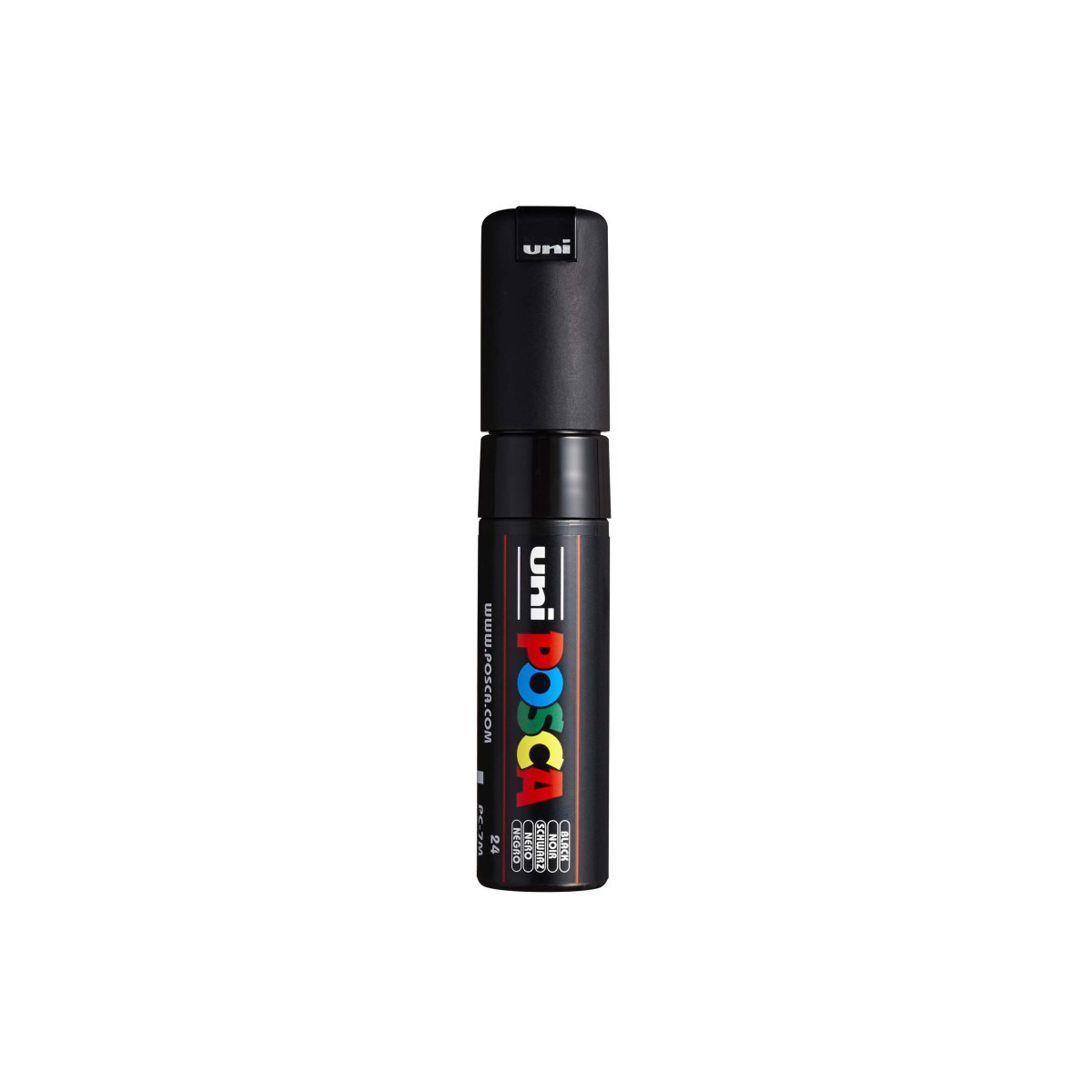 Create bold, expressive artwork with the POSCA PC-7M Paint Markers, Broad Bullet Tip (4.5–5.5 mm), Black. Designed for artists, makers, and students who want smooth, high-impact color, these markers feature a broad bullet tip that produces thick, even lines ideal for coloring, shading, lettering, signage, and large-scale illustration. The highly opaque, water-based paint adheres to paper, wood, canvas, metal, glass, ceramic, plastic, stone, and fabric while drying quickly to a matte, smudge-resistant finish. Each marker offers excellent coverage, layers cleanly without bleed-through, and maintains consistent paint flow through POSCA’s valve-controlled system. Durable, reversible tips allow for extended use and reliable performance. Whether used for mixed media, journaling, decoration, posters, or classroom projects, the PC-7M marker delivers vibrant color, strong opacity, and the professional quality artists expect from POSCA.