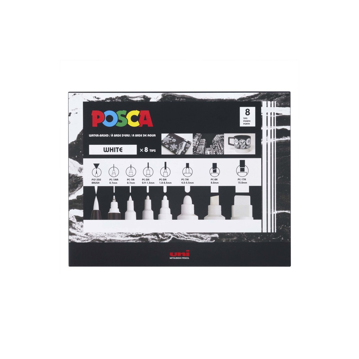 Elevate your artistic expressions with the versatile and dynamic uni POSCA® 8 tip set! This secret weapon empowers you to create stunning masterpieces in graffiti, fine art, street art, illustration, and customization. Explore new horizons and unleash your inner artist with POSCA®! Designed for Ultimate Comfort and Precision: The uni POSCA® 8 tip set features a semi-rigid structure for a unique grip and exceptional control. Whether you prefer an upright or inverted approach, this marker set offers a wide range of effects to bring your vision to life. Unleash Your Creativity on Over 50 Surfaces: From wood to glass, metal to plastic, ceramic to leather, the uni POSCA® 8 tip set water-based paint markers excel on various surfaces.