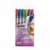 Add sparkling, eye-catching effects to your artwork with the DecoColor® Paint Markers by Marvy Uchida®, Glitter Colors, Set of 6. These vibrant markers feature a fine plastic point that delivers smooth, precise lines infused with ultra-fine glitter for a brilliant, shimmering finish. The alcohol-based, pigmented ink provides consistent color, dries quickly, and remains lightfast to prevent fading over time. Each marker is acid-free, non-toxic, and conforms to ASTM D4236, making them safe for classroom, home, and studio use. Designed to work beautifully on metal, wood, stone, paper, and other porous or semi-porous surfaces, these glitter markers are perfect for lettering, embellishing cards, scrapbooking, journaling, decorative artwork, and craft projects.