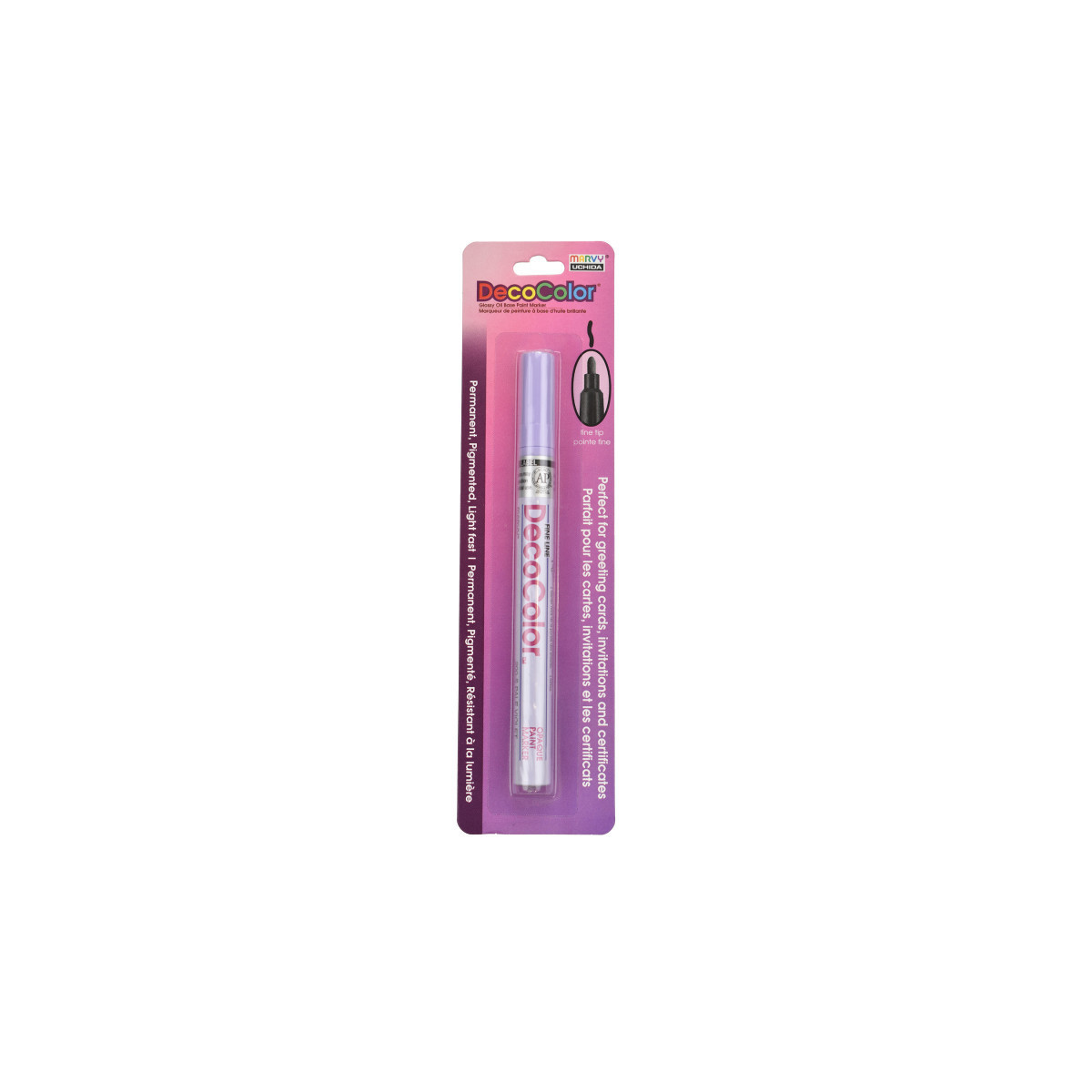 Create clean, permanent lines on a wide variety of surfaces with the DecoColor® Paint Marker, Fine Tip, 200-S, Pale Violet by Marvy Uchida®. This versatile marker features a fine point that delivers smooth, controlled application ideal for labeling, outlining, detailing, and decorative artwork. The oil-based, pigmented ink provides strong opacity, dries permanently, and remains lightfast for long-lasting color. It is acid free, weatherproof, and designed to cover most non-coated surfaces including glass, clay, wood, stone, porcelain, mirrors, metal, and paper. The durable formula includes xylene for enhanced adhesion and performance, making it suitable for indoor and outdoor projects where permanence is essential. Users should test the marker on an inconspicuous area first, as results may vary depending on surface type, finish, climate, and material composition. DecoColor® Fine Tip Paint Markers are ideal for artists, hobbyists, and makers who need crisp, reliable, permanent marks across multiple hard surfaces.