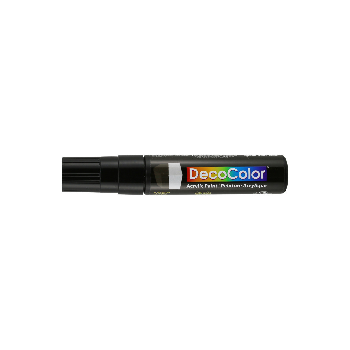 The DecoColor® Acrylic Jumbo Paint markers work great on wood, plaster, foam, walls, paper, and terra cotta. These are perfect for decorating, outdoor crafts like flower pots and benches, and other arts and crafts. This marker has a 15 mm tip that is flat, providing thick and thin lines. Paint is acid-free, non-toxic, and permanent when dry.