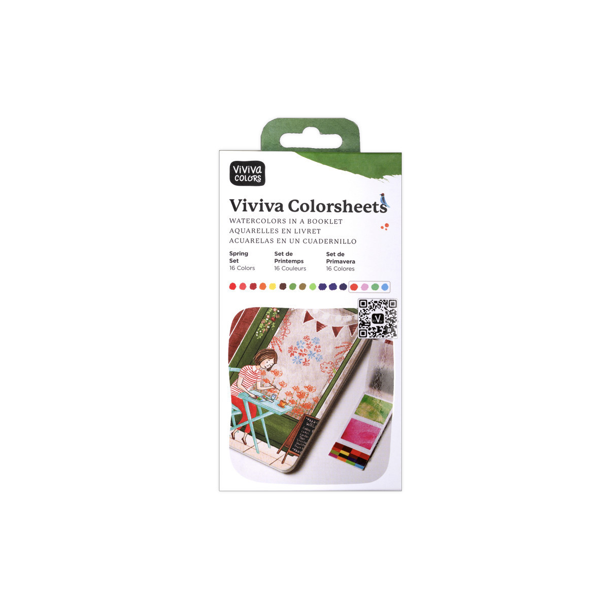 Add a little spring to your step with the ultra-portable Viviva Watercolor Paint Colorsheets in 16 Spring Colors. Colorsheets are ingenious portable watercolor sets made as small booklets featuring super-saturated layers of pigment deposited on the paper. To use, simply wet your brush, dab it into the color, and start painting. The vibrant watercolors are made with high-quality pigments with colors so bright, they jump right off the page.