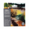 Set of 6 rich earth colors: Includes Perylene Green, Olive Green, Naples Yellow, Light Red, Caput Mortuum Violet, and Vandyke Brown.