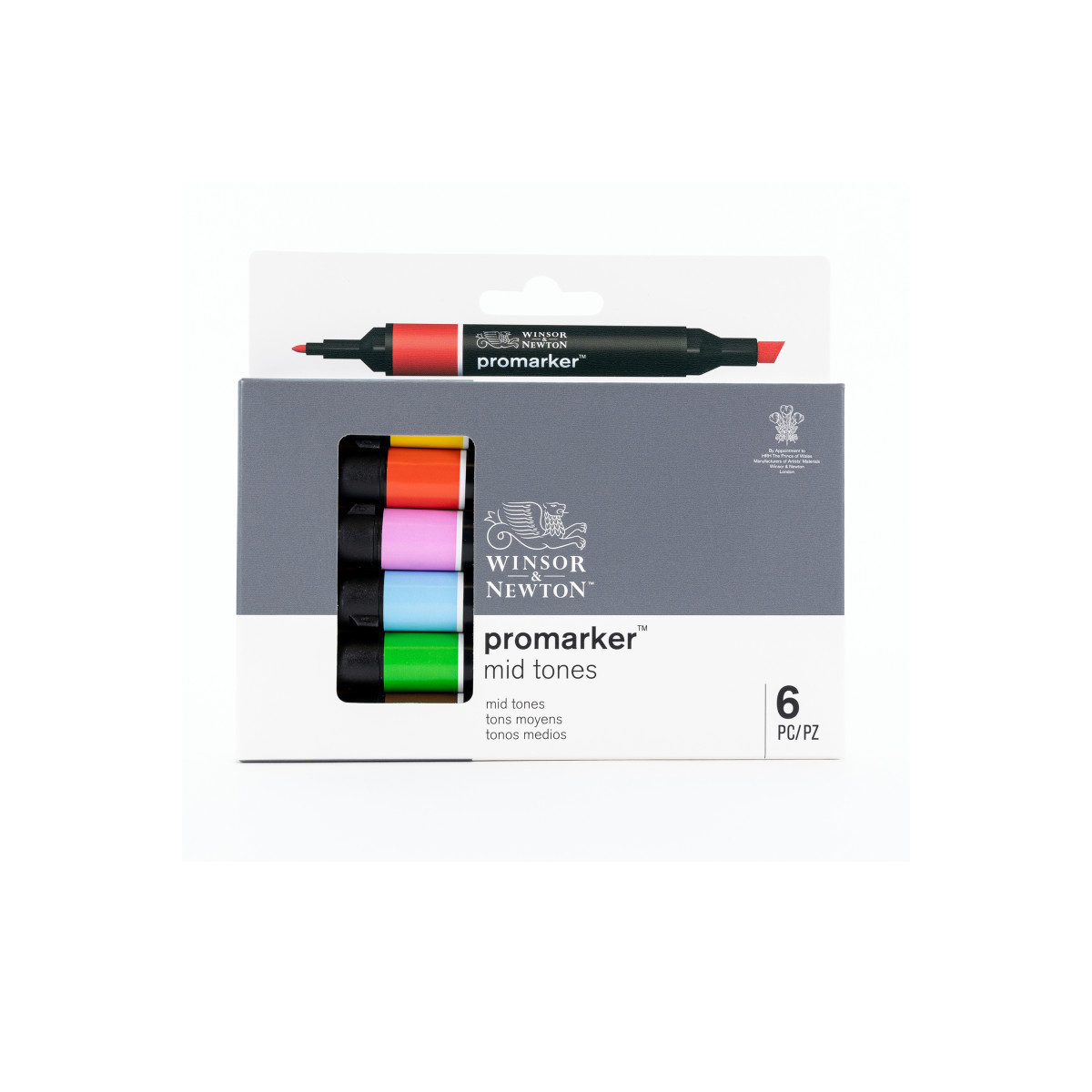 Build balanced, versatile color palettes with the Winsor & Newton Promarker™ Mid Tones, Set of 6, designed for illustrators, designers, and artists who rely on smooth, even color transitions. This curated selection includes Red, Cocoa, Tulip Yellow, Grass, China Blue, and Pink Carnation, a harmonious range of mid-tone shades ideal for character design, landscapes, fashion, product concepts, and general illustration work.