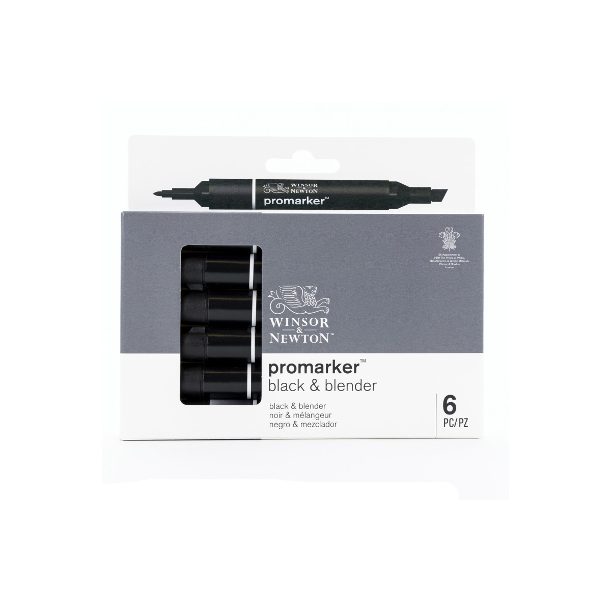 Streamline your illustration essentials with the Winsor & Newton Promarker™ Black/Blender, Set of 6, a practical combination pack designed for artists, illustrators, designers, and students. This set includes five Black Promarkers™ and one Blender, giving you a reliable supply of the most frequently used shade along with a versatile tool for smoothing transitions, softening edges, and creating seamless gradients.