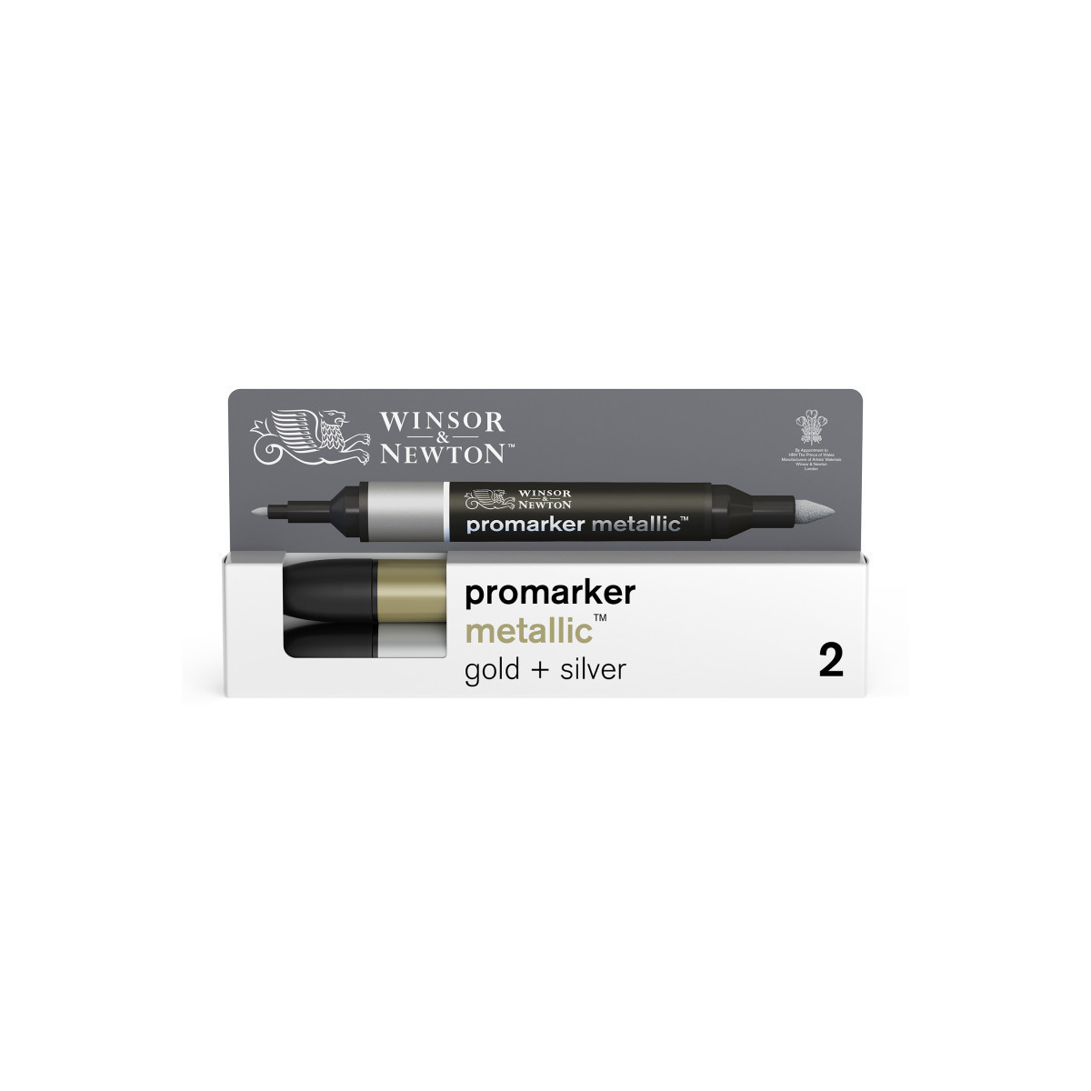 Metallic duo set: Includes one Metallic Gold Promarker™ and one Metallic Silver Promarker™.