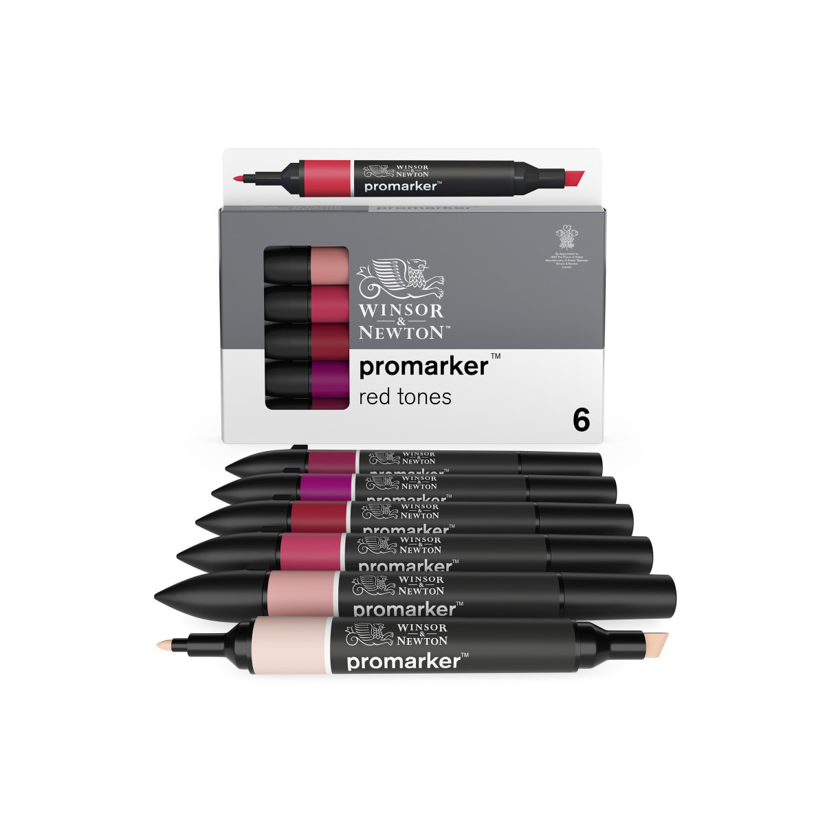Create expressive warmth, bold accents, and beautifully blended red hues with the Winsor & Newton Promarker™ Red Tones, Set of 6. This curated palette includes Soft Peach, Salmon Pink, Lipstick Red, Berry Red, Maroon, and Burgundy, offering a complete spectrum from delicate blush tones to deep, dramatic reds. Perfect for character illustration, stylized artwork, fashion design, floral studies, and richly layered shading, this set provides exceptional versatility across both warm and cool red families.