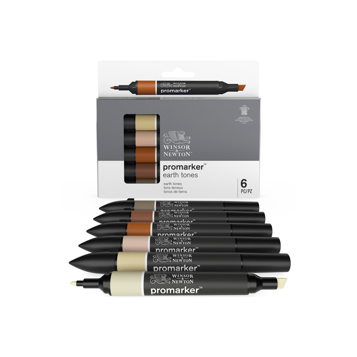 Achieve natural depth, rich warmth, and beautifully grounded color work with the Winsor & Newton Promarker™ Earth Tones, Set of 6. This essential palette includes Khaki, Sandstone, Tan, Terracotta, Walnut, and Umber, offering a full spectrum of earthy hues ideal for landscapes, character design, botanical illustration, environmental concept art, and warm-toned renders. From soft natural neutrals to deep wood-inspired browns, these tones provide exceptional versatility for creating believable shading, natural textures, skin tones, and organic surfaces.