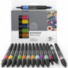 Perfect for tattoo concept artists, illustrators, character designers, and graphic creators, this set provides a powerful range of saturated primaries, deep jewel tones, earthy neutrals, and essential greys. Each marker features the signature dual-tip design, with a fine bullet nib for crisp outlines and detailed work, and a broad chisel nib for smooth fills, shadows, and seamless gradients.
