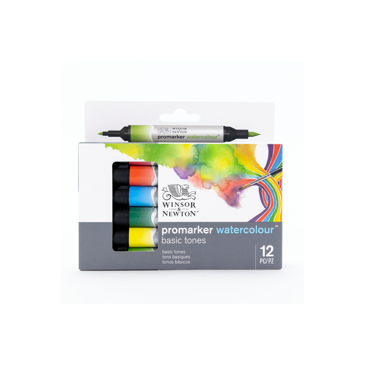 Experience the expressiveness of watercolor with the precision of a marker using the Winsor & Newton Promarker™ Watercolor, Basic Tones, Set of 12. This expanded foundational set includes Alizarin Crimson Hue, Burnt Umber, Cadmium Red Hue, Cadmium Yellow Hue, Cerulean Blue Hue, Dioxazine Violet, Hooker’s Green Dark, Ivory Black, Lemon Yellow Hue, Prussian Blue Hue, Sap Green, and Yellow Ochre, offering a comprehensive palette for mixing, layering, and traditional watercolor techniques.
