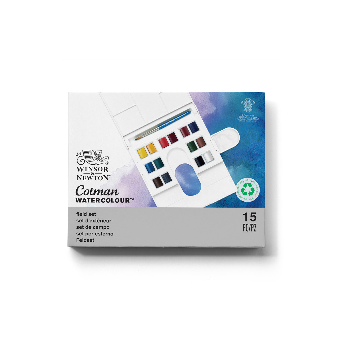 Portable field watercolor kit: Includes 14 Cotman watercolor half pans made with quality, fine-art pigments.