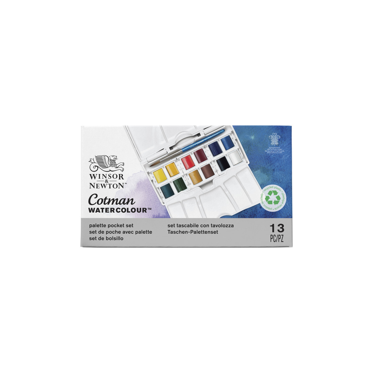 The Winsor & Newton Cotman Watercolor Palette Pocket Set offers a curated selection of 12 Cotman Watercolors made with quality, fine-art pigments. Designed for maximum portability, this compact pocket set provides rich, transparent washes in a convenient format perfect for fieldwork, travel, classrooms, and everyday sketching. Inside the durable case, artists will find a versatile selection of colors, a travel brush, and palettes with multiple mixing areas, making it easy to blend and customize hues on the go. The carefully chosen range of warm and cool tones supports landscapes, urban sketching, botanical studies, and quick studies outdoors or in the studio. Lightweight, reliable, and beginner-friendly, this set is ideal for artists who need dependable color performance in a compact and travel-ready design.