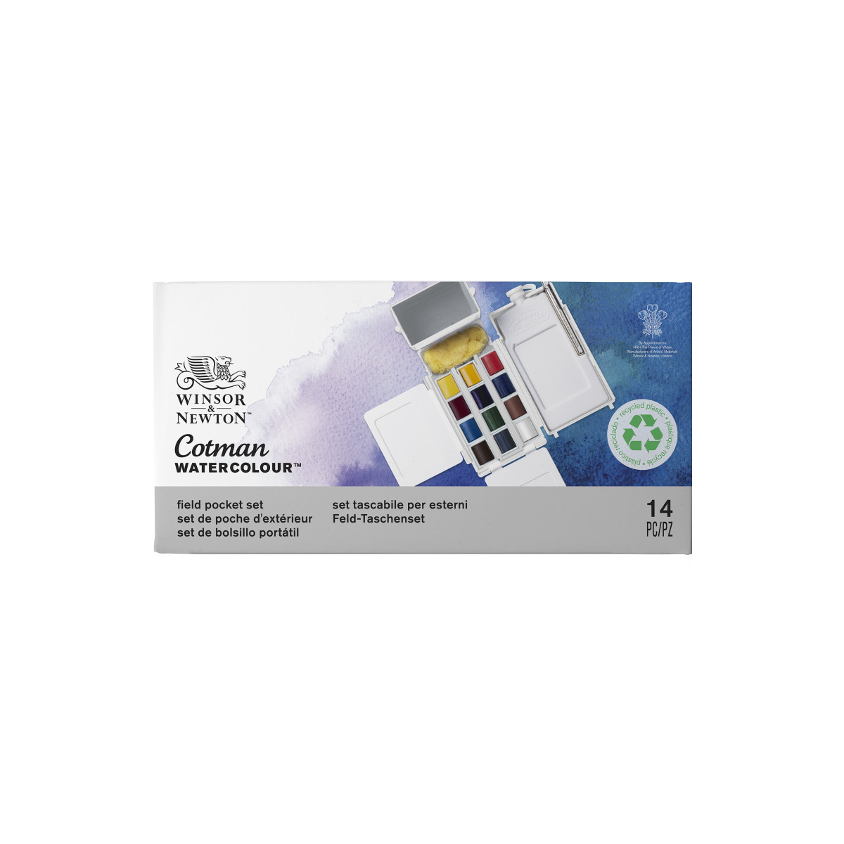 The Winsor & Newton Cotman Watercolor Field Pocket Set offers a complete, compact solution for outdoor and travel watercolor painting. This uniquely engineered pocket-sized kit contains 12 Cotman Watercolors crafted with quality, fine-art pigments to ensure vibrant washes, dependable transparency, and lasting performance. Designed for true portability, the set unfolds to reveal a travel brush, a sponge, a 35 mL water bottle, a water container, and twelve half pans arranged for efficient access. Multiple mixing areas allow artists to explore broad color blends even while working in the field. Lightweight, durable, and cleverly arranged, this set is perfect for plein-air painters, urban sketchers, students, and hobbyists who want studio-quality results in a compact format.