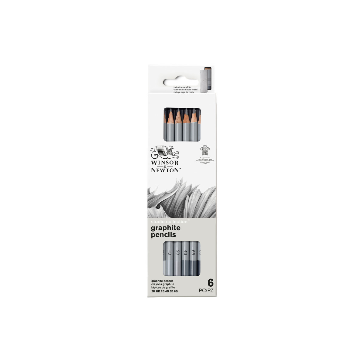 The Winsor & Newton Studio Collection Graphite Pencil Tin, Set of 6, offers a versatile range of graphite grades ideal for sketching, shading, and detailed drawing. This curated assortment includes 2H, HB, 2B, 4B, 6B, and 8B, giving artists the flexibility to achieve both fine lines and rich, expressive darks. Each pencil is crafted with high-quality graphite for smooth laydown, excellent blendability, and consistent performance across techniques. Housed in a durable metal tin, the set is perfect for studio use, travel, classroom environments, and everyday sketchbook practice. Reliable, easy to sharpen, and suitable for all skill levels, these pencils make an essential foundation for any drawing toolkit.