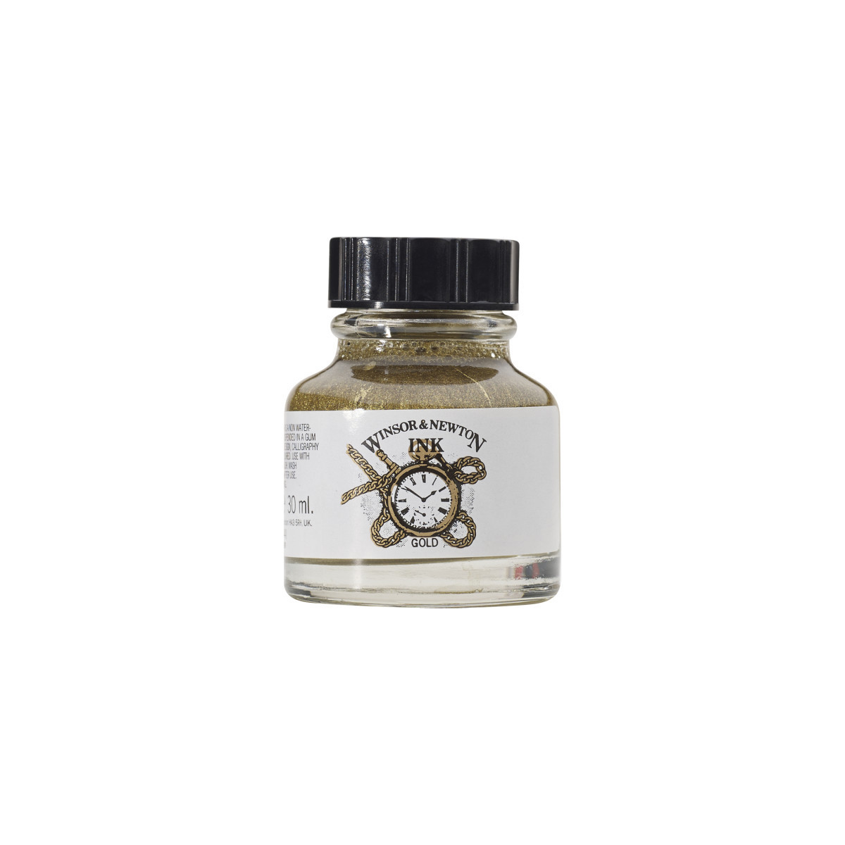 Bring some sparkle into your art with Gold Drawing Ink. The ink comes in one of Winsor & Newton's good, old-fashioned iconic bottles. Fast-drying, water resistant and transparent, all the colors are inter-mixable and you can overlay different colors for new effects and shades. Drawing Inks have been used by illustrators since their introduction by Winsor & Newton in the 1890’s, where the main requirement is brilliance of color. Today they are formulated from a series of soluble dyes in a superior shellac solution. These inks can be applied with brush, dip pen or airbrush and are widely used by designers, calligraphers and artists as well as illustrators.