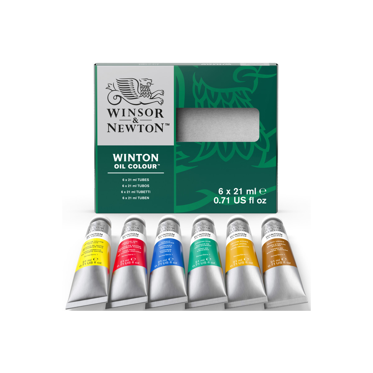 Winsor & Newton's Winton Oil Color Paint line is a bright, beautiful, and affordable range of oil paints, perfect for artists who want to experiment or need large quantities of color. All of the tones have been carefully made to bring out the best of each pigment, so you can create bold and vibrant artworks. This intro set contains (6) 21 mL tubes of Winton Oil Color. Includes: Cadmium Yellow Pale Hue, Cadmium Red Deep Hue, French Ultramarine, Viridian Hue, Yellow Ochre, and Burnt Umber.