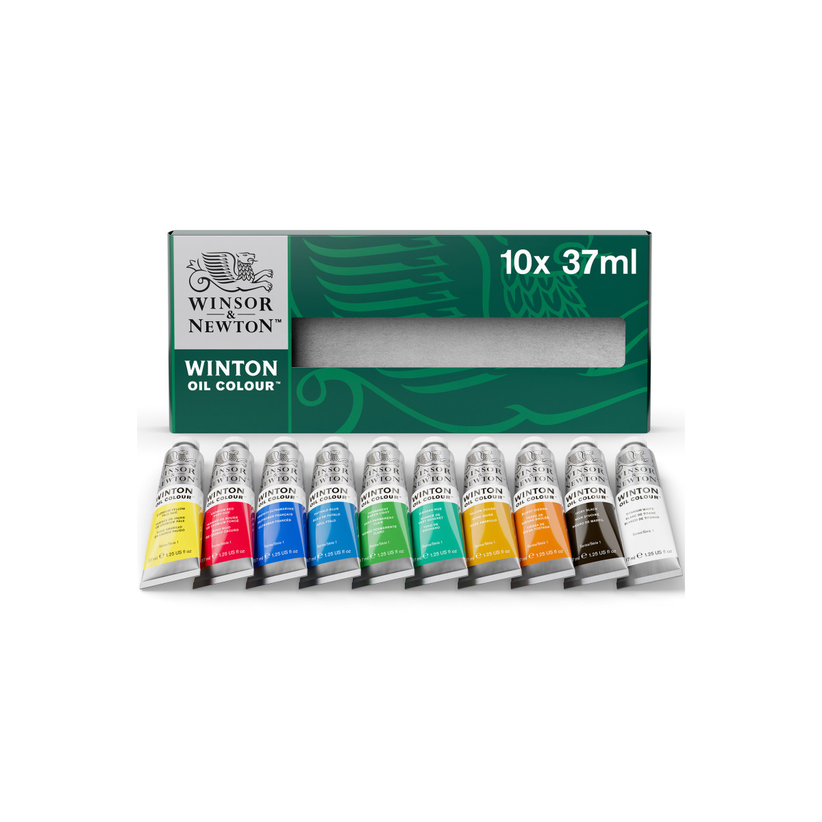Winsor & Newton's Winton Oil Color Paint line is a bright, beautiful, and affordable range of oil paints, perfect for artists who want to experiment or need large quantities of color. All of the tones have been carefully made to bring out the best of each pigment, so you can create bold and vibrant artworks. This basic color set contains a comprehensive range of colors in 37 mL tubes. Includes: Titanium White, Ivory Black, Burnt Sienna, Yellow Ochre, Viridian Hue, Permanent green light, Phthalo Blue, French Ultramarine, Cadmium Red Deep Hue, and Cadmium Yellow Pale Hue.