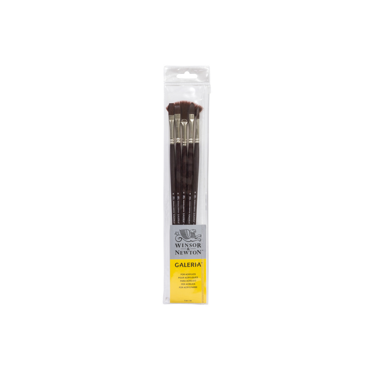 Create dynamic, expressive acrylic artwork with the Galeria Acrylic Brushes, Long Handle, Set of 5 by Winsor & Newton, designed for artists who require durability, resilience, and smooth color control when working with heavier-bodied paints. This comprehensive set includes Round 8, Flat 8, Filbert 8, Bright 8, and Fan 5, five essential shapes that give painters the flexibility to move seamlessly between fine detailing, clean edges, bold coverage, blending, layering, and textured effects.