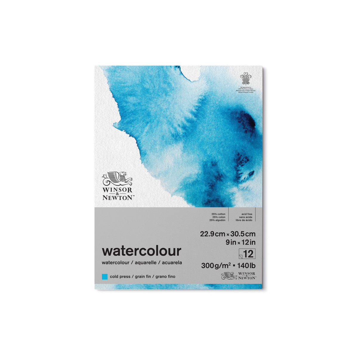 Create beautiful watercolor artwork with the Winsor & Newton Watercolor Pad, Cold Press, 9x12 in, 300 gsm (140 lb), designed for artists, hobbyists, and students seeking reliable performance and dependable surface quality. Each sheet is made from a 25% cotton and 75% cellulose blend, giving the paper the softness and absorbency of cotton while maintaining the strength and stability of high-quality cellulose fibers. This balanced composition provides even pigment flow, controlled absorbency, and consistent working properties across washes, glazing, and fine detail.