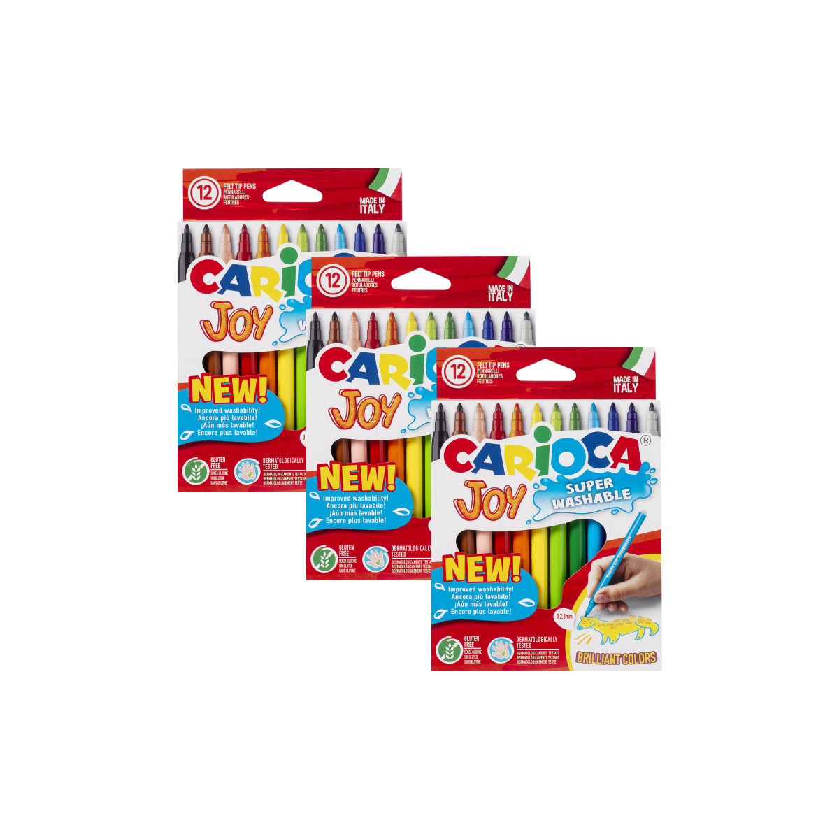 The Carioca Joy Fine Tip Felt Tip Pens – 12 Pieces are classic art markers designed for precision and vibrant coloring. Featuring a 2.8 mm fine and blocked tip, these pens are perfect for detailed artwork, school projects, and creative writing. The super washable ink ensures easy cleanup from skin and most fabrics, making them ideal for children and classrooms. Each pen comes with a ventilated cap for safety, and the set is Made in Italy, guaranteeing high-quality craftsmanship. Compact and versatile, this set is perfect for both home and school use, combining reliability, safety, and bright, lasting colors. Each pack includes 12 markers. Sold as 3 packs for a total of 36 markers.