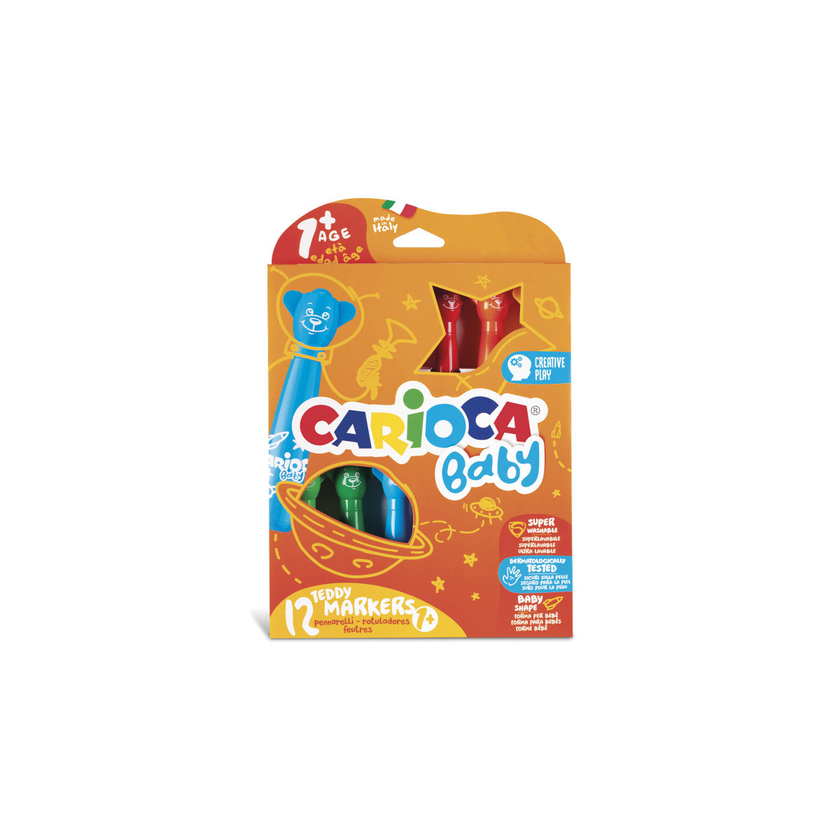 The Carioca BABY Teddy Markers – 12 Pieces are thoughtfully designed for toddlers, providing a safe and fun introduction to coloring and creative play. Suitable for children from 12 months, these ergonomic crayons are easy for little hands to hold and manipulate. The markers feature super washable, nontoxic ink that easily washes off skin and most fabrics with just water, no soap required. Dermatologically tested for safety, they encourage imaginative games and storytelling while promoting early artistic skills. Each box contains 12 vibrant BABY Teddy Crayons, crafted in Italy to ensure quality, safety, and hours of colorful fun.